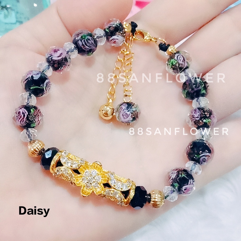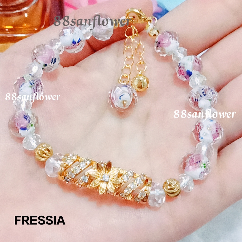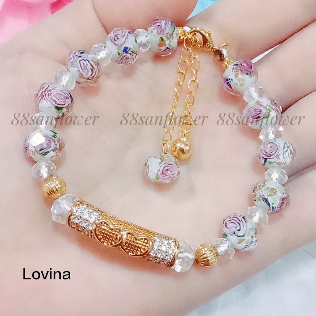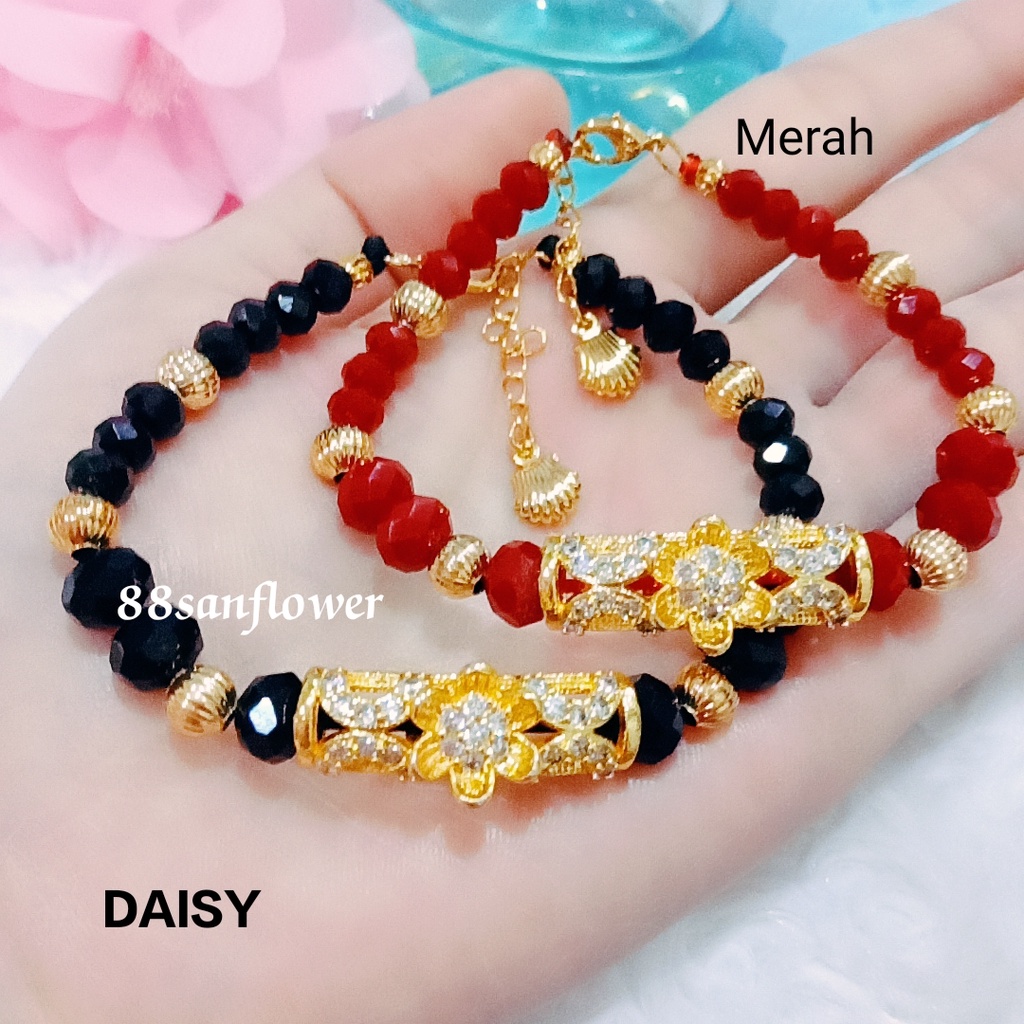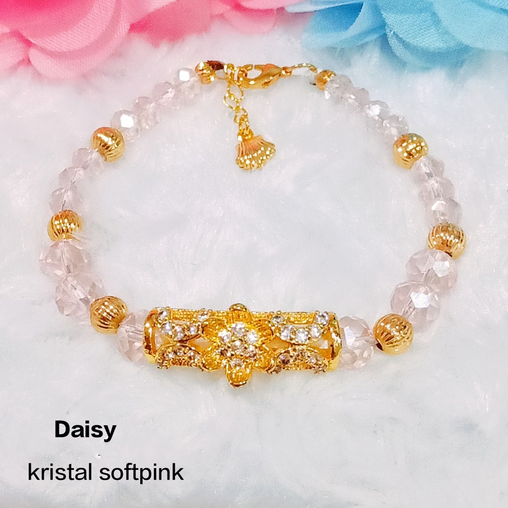 Gelang Kristal Emboss Mawar - Liontin Pipa Emas