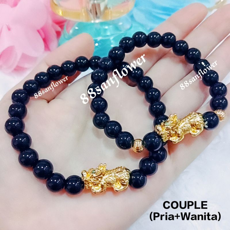 GELANG NAGA HITAM . GELANG COUPLE Batu Etnik Hitam Vintage Pixiu Lapis Emas