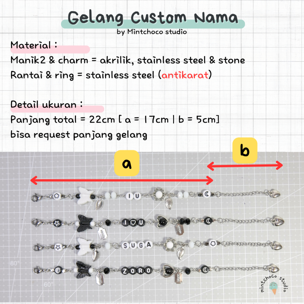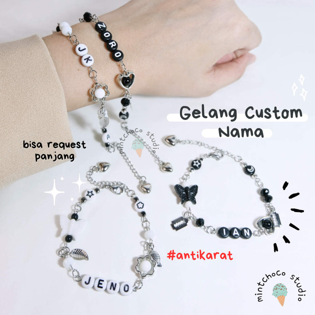 Gelang Nama Custom Aesthetic Antikarat | Handmade Bracelet