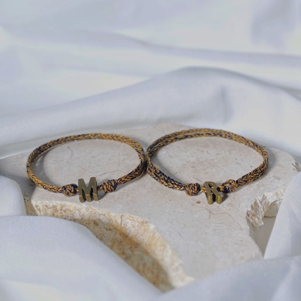 Gelang Couple Saka simple Aestetic barang manik Stainless capel cauple pasangan Tali Huruf Custom