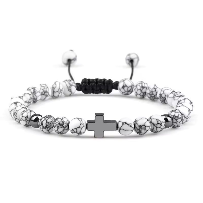 ALPHA OMEGA - Gelang Salib Tali Batu Alam Volcanic Lava Pria Wanita