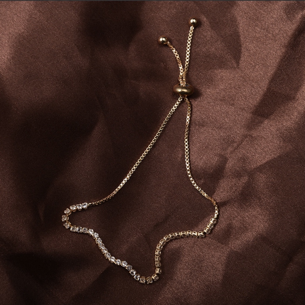 Gelang Serut Adjustable Wanita Imitasi Fashion Berlian Imitasi
