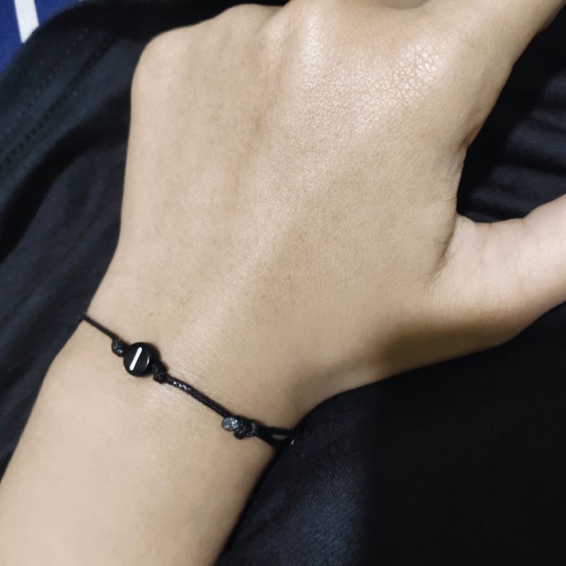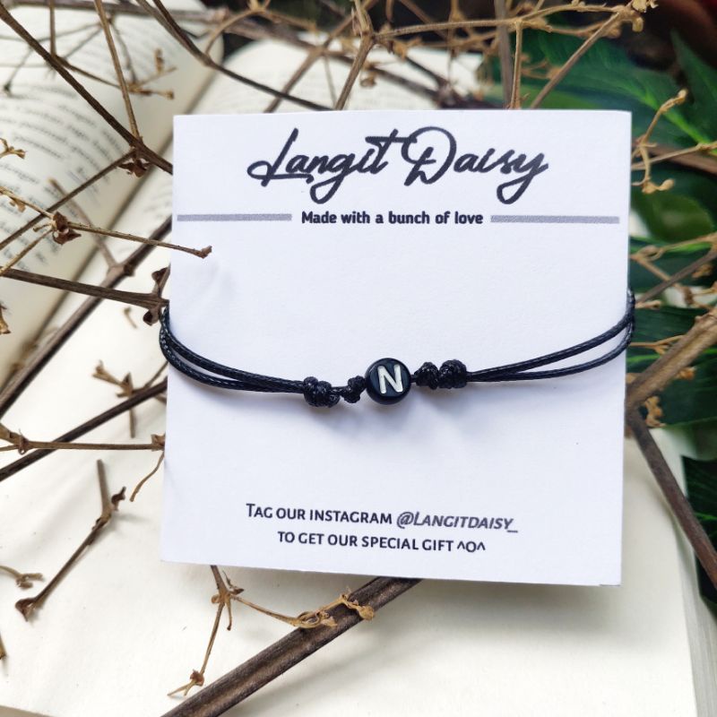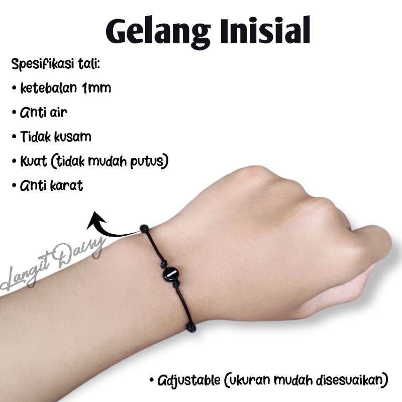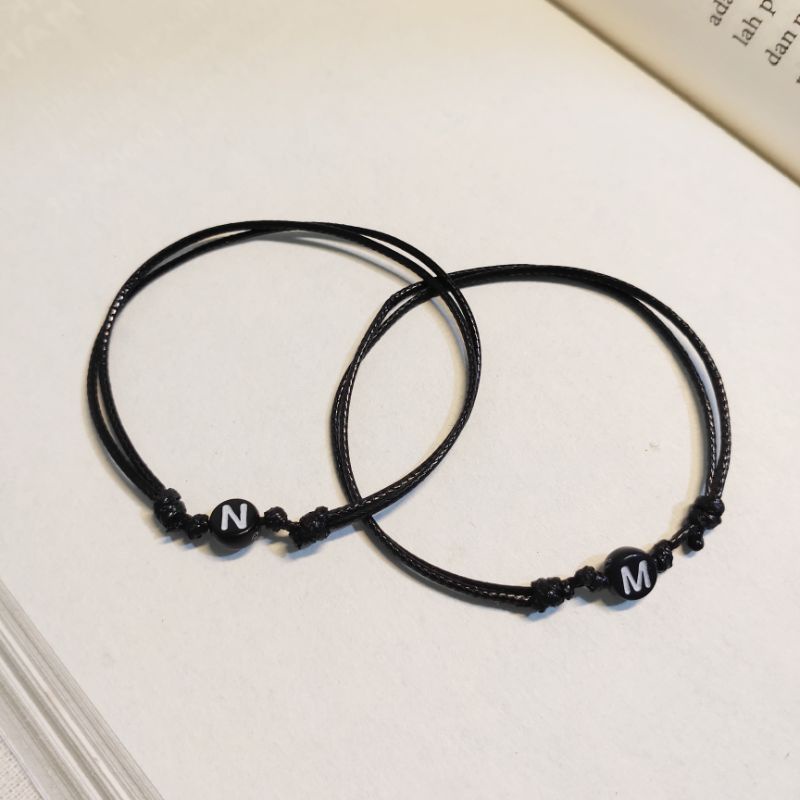 Gelang Tali Custom Inisial Nama | Gelang Tali Couple Simple Tipis | Tali Korea Waterproof Anti air | Adjustable | Couple Pasangan Sahabat | Cowok Cewek | Hitam Tipis | Minimalis Vintage | Murah | Custom Inisial Nama