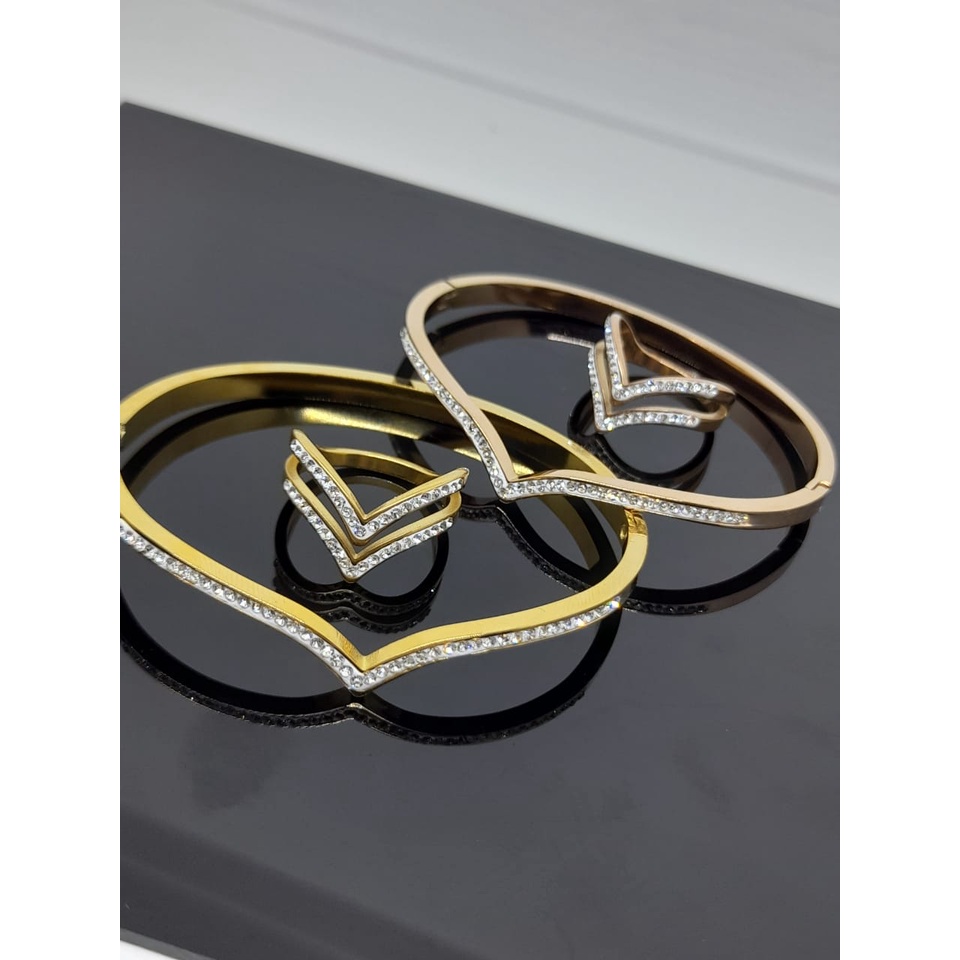 Gelang Titanium Fuji / Gelang Aurel V Viral / Satu Set Gelang dan Cincin Fuji / Anti Karat dan Luntur / Awet Tahan Lama