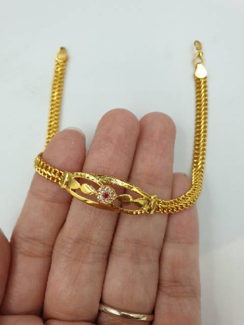 Gelang emas asli kadar 875 model holo permata AD putih merah bulat 3 simple mewah #131018