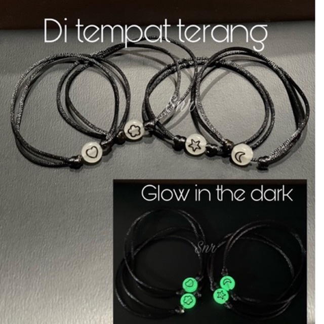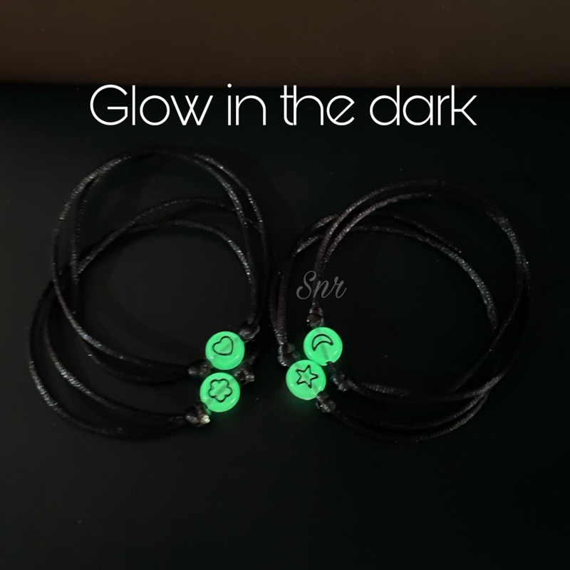 Gelang glow in the dark alphabet huruf gelang aesthetic glow in the dark | gelang tali hitam | gelang tangan wanita | kado