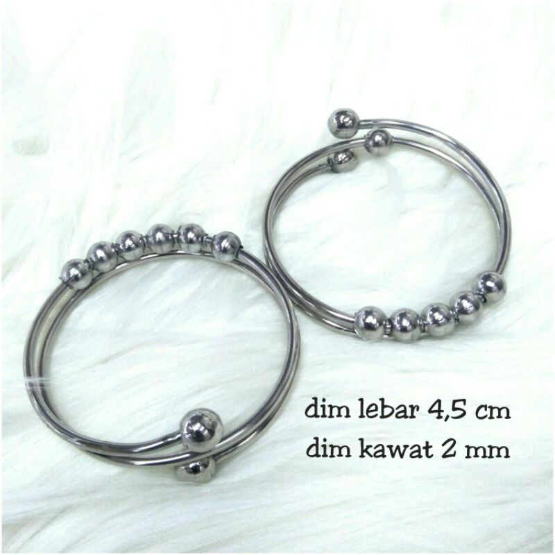 Gelang pentol bola lilit anak besi/baja putih (monel)