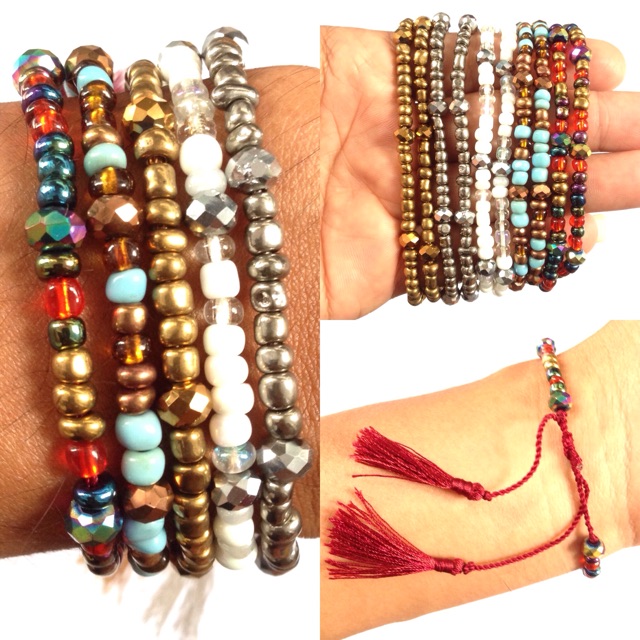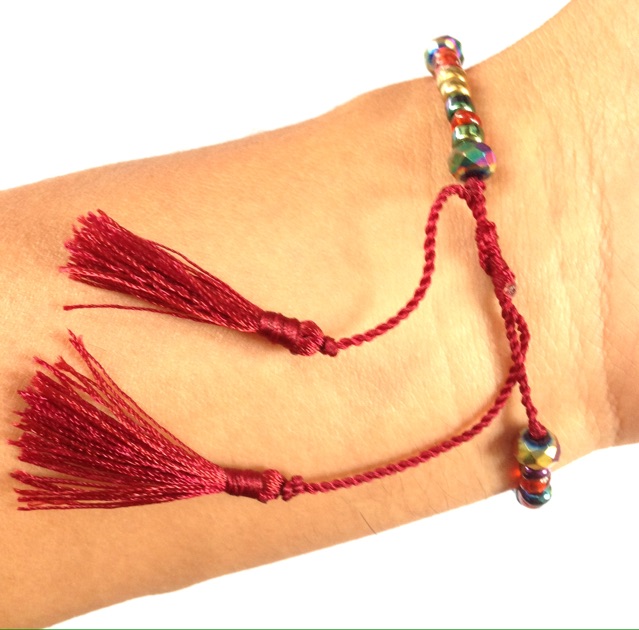 Gelang tali kristal tassel manik
