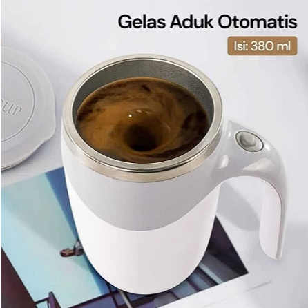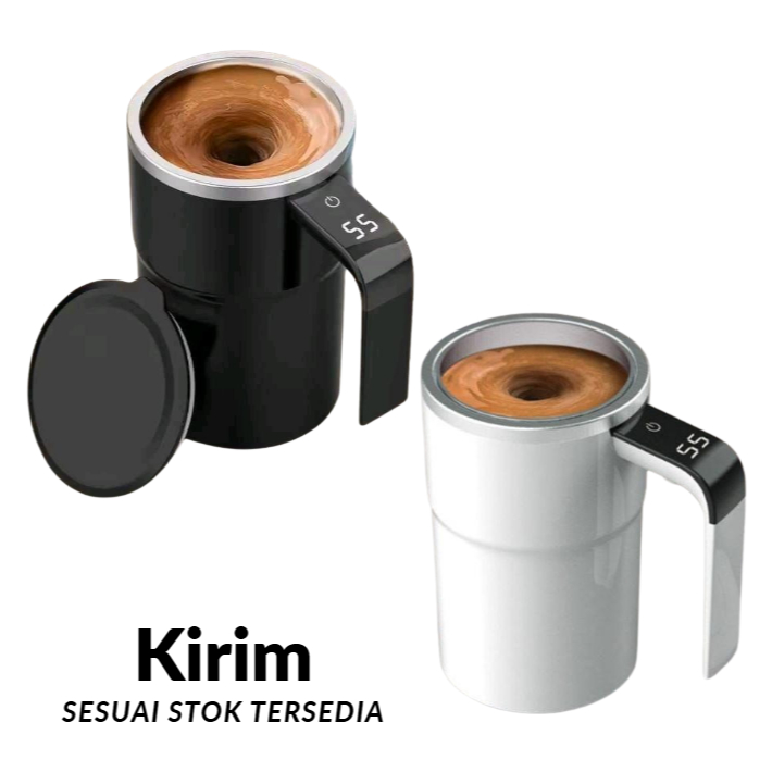 Gelas Aduk Otomatis Elektrik Self Stirring Mug Cangkir Kopi Teh Susu Praktis Stainless Steel Tutup