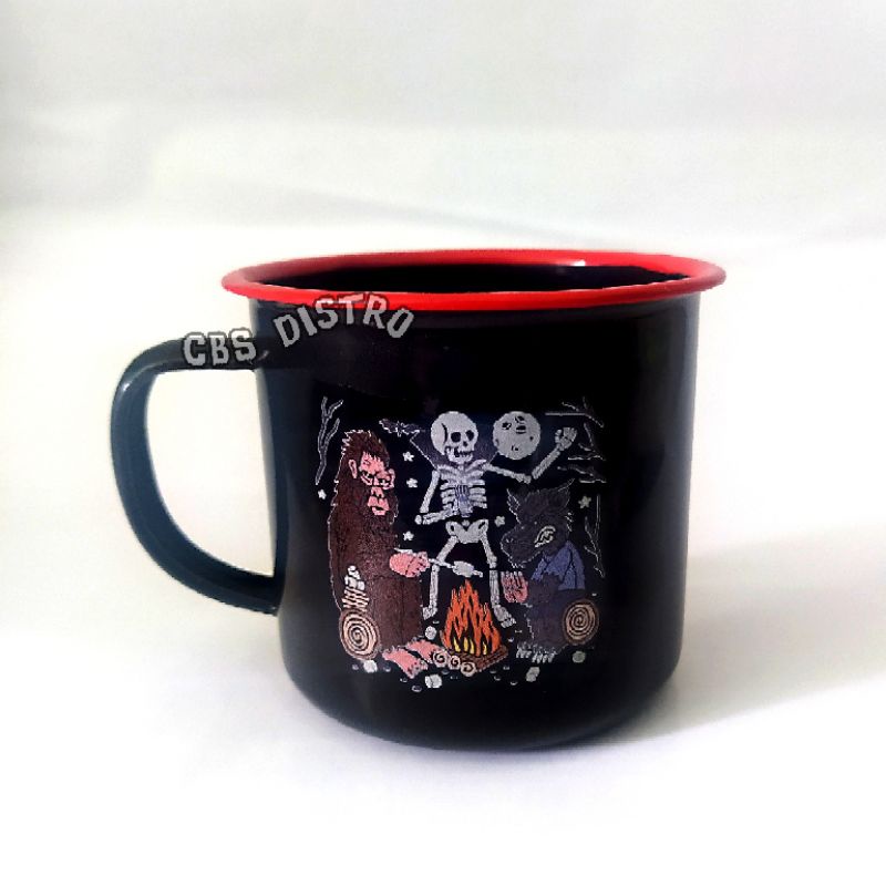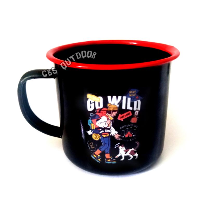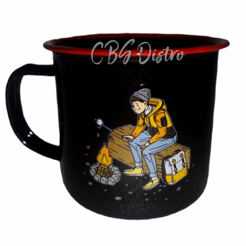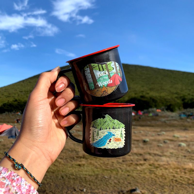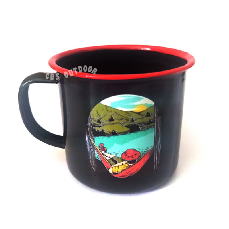 Gelas Cangkir Mug Muk Stainless Enamel Coffee Kopi Outdoor Gunung Karabiner