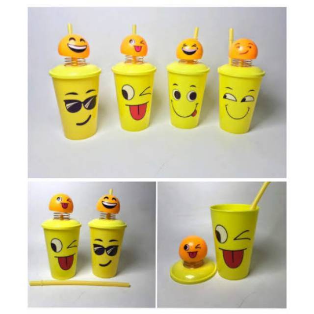 Gelas Emoticon LED/ Gelas Emoji/ Tempat Minum Emoticon LED