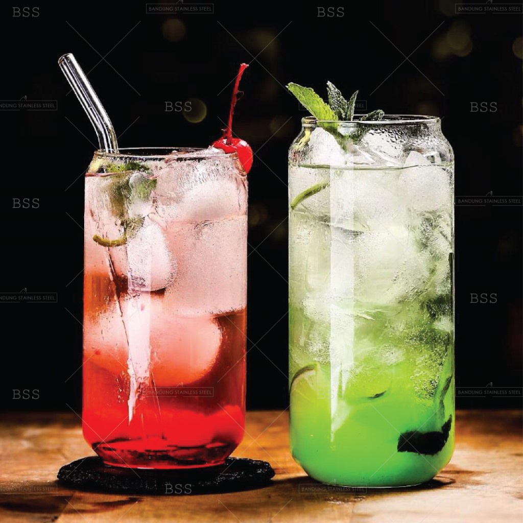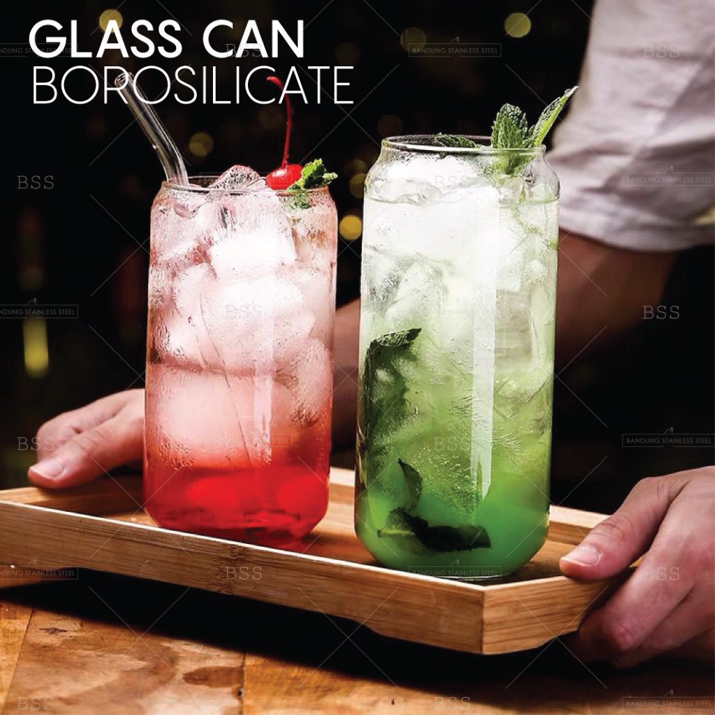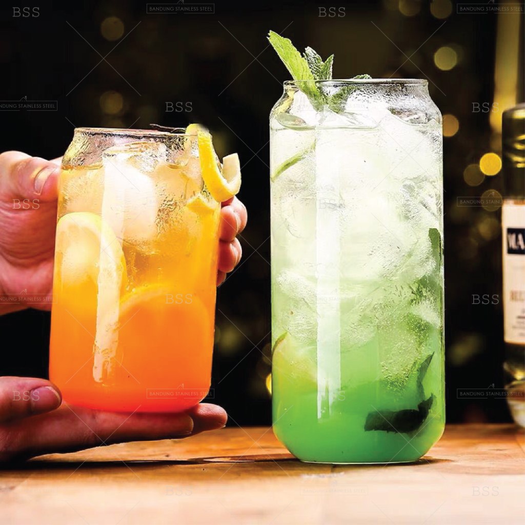 Gelas Kaca Aesthetic Borosilicate Can Beer Mojito Juice Jus Glass Air Minum Cantik Unik Simple Polos
