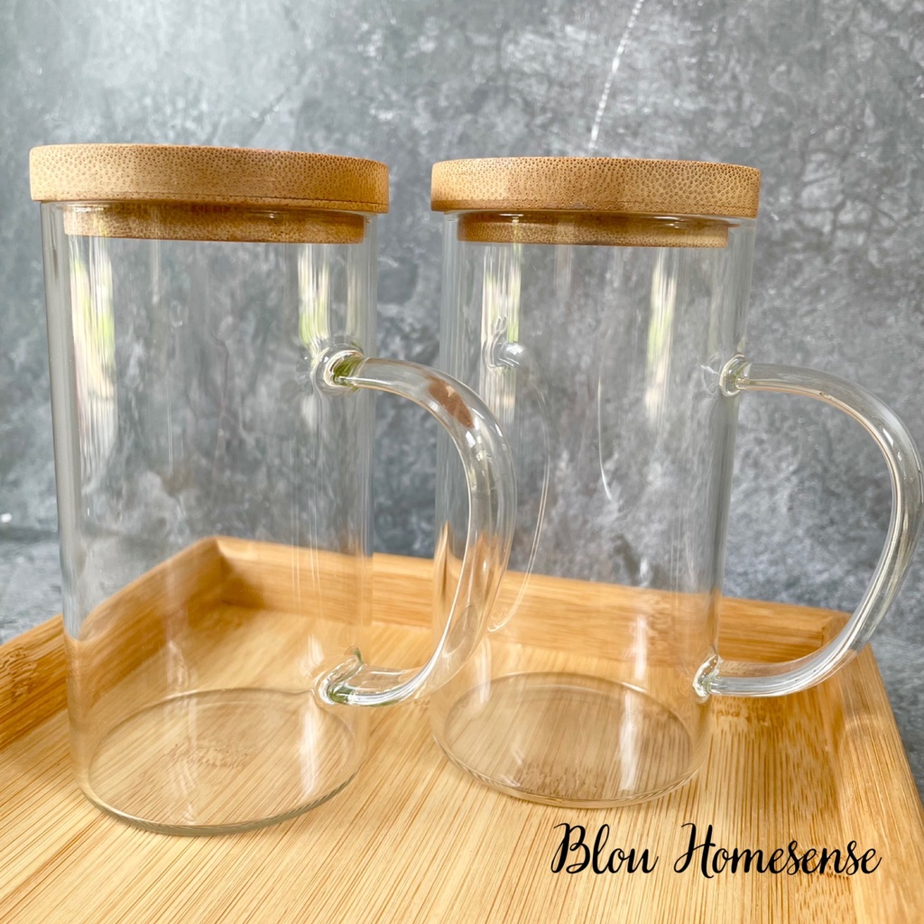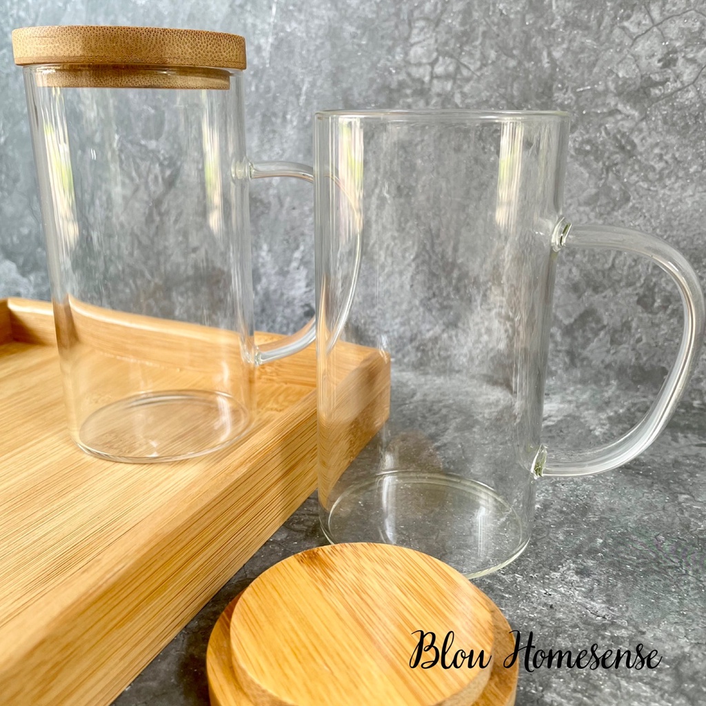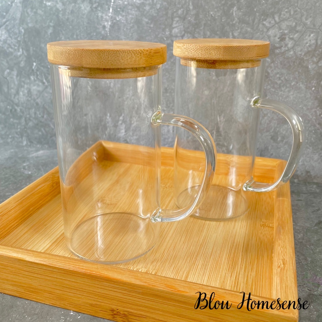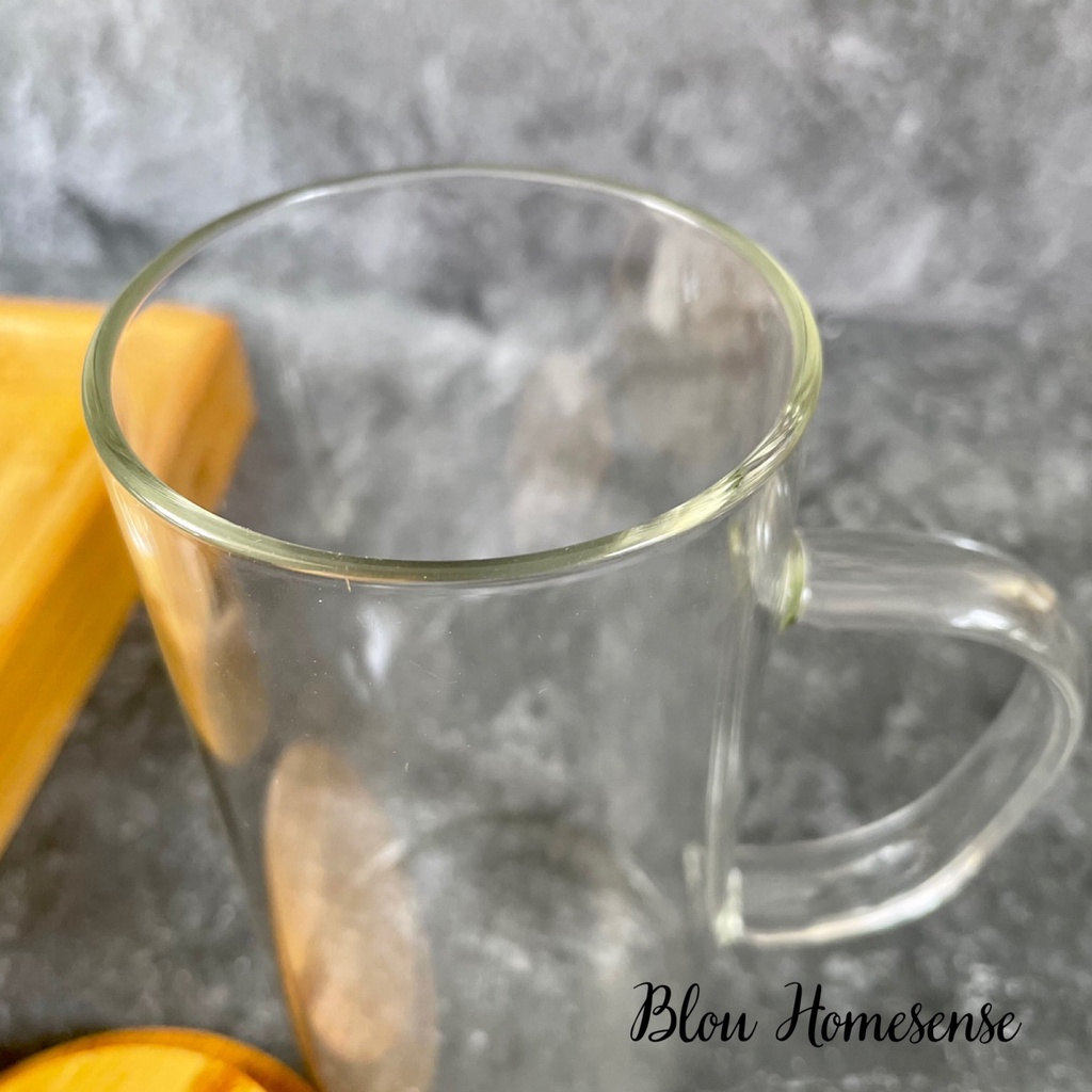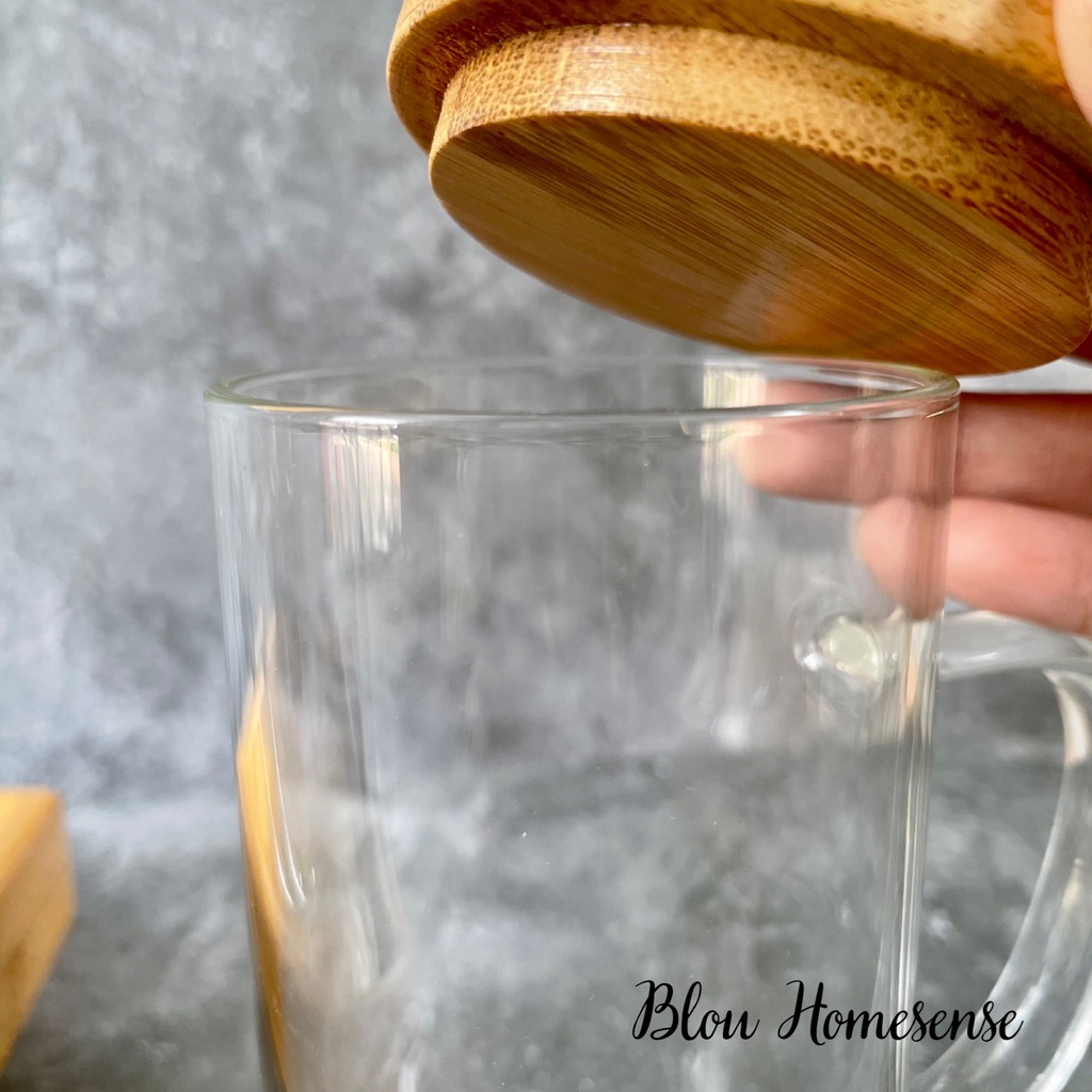 Gelas Kaca Transparan dengan Tutup Kayu Wooden Lid 300ml
