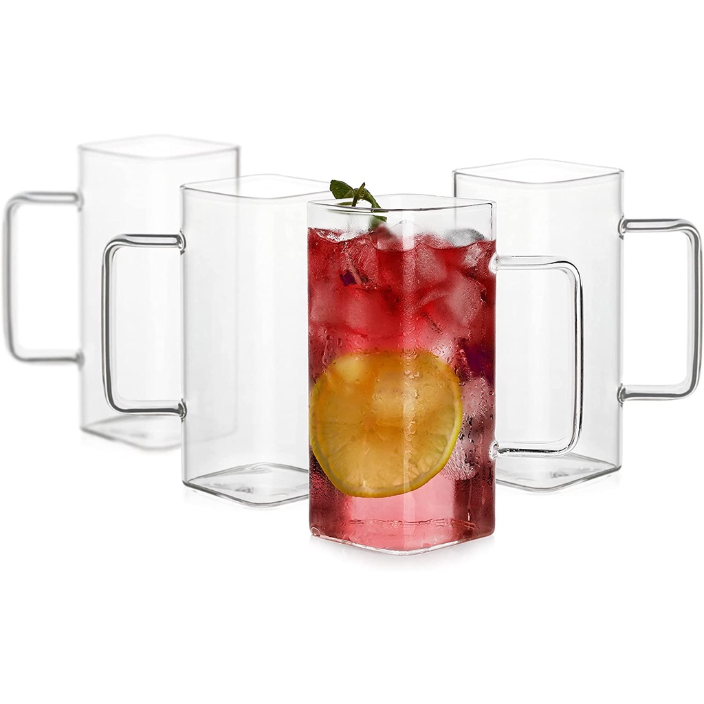 Gelas Kopi Susu 370ml Bentuk Kotak dengan Handle Transparant / Gelas Juice Mojito Unik 370ml / Gelas Mojito 370ml
