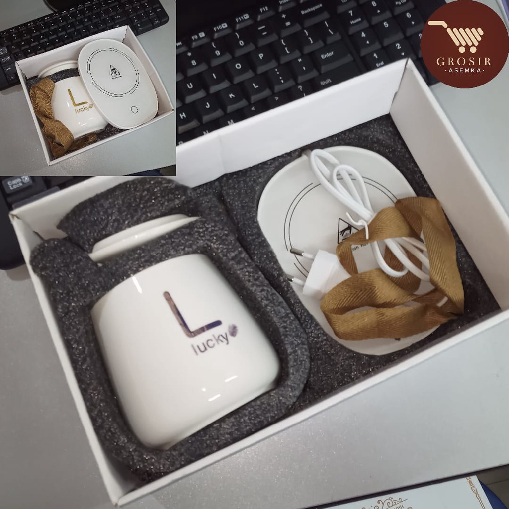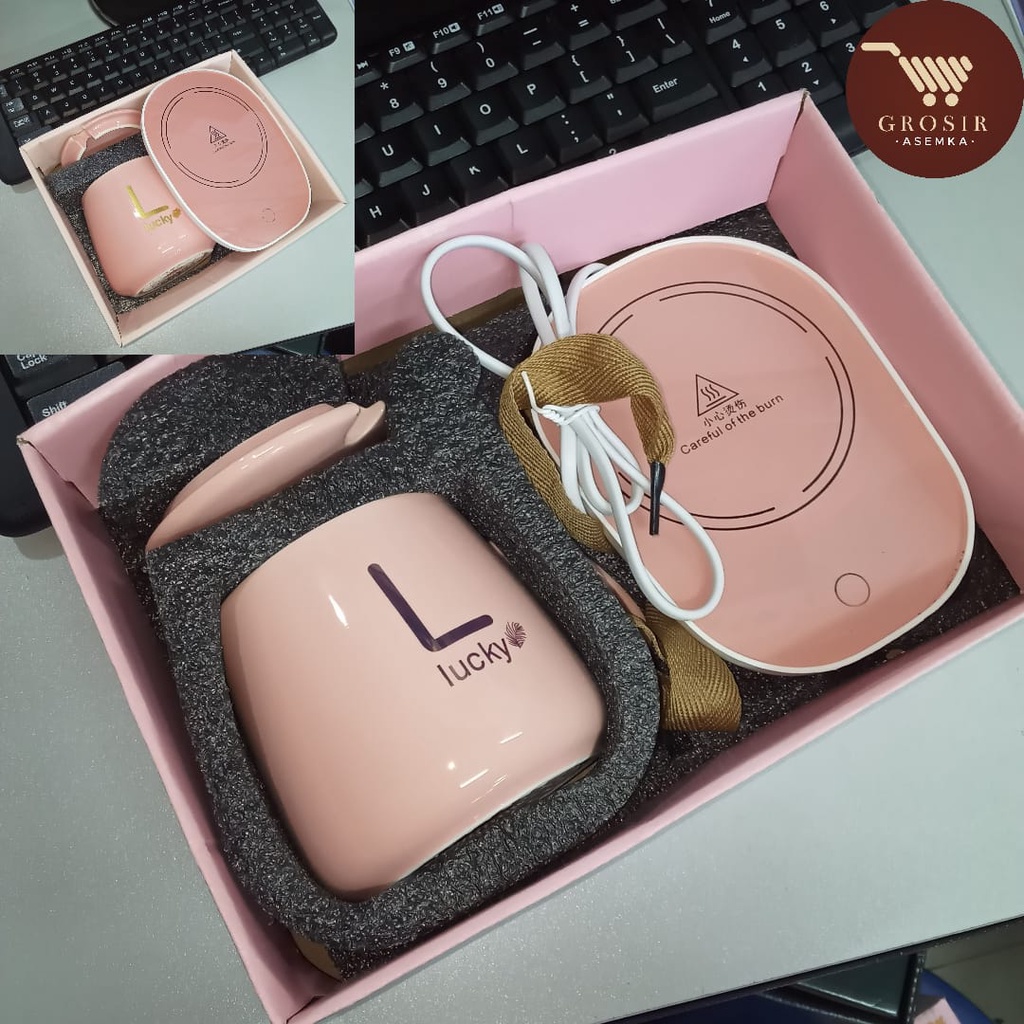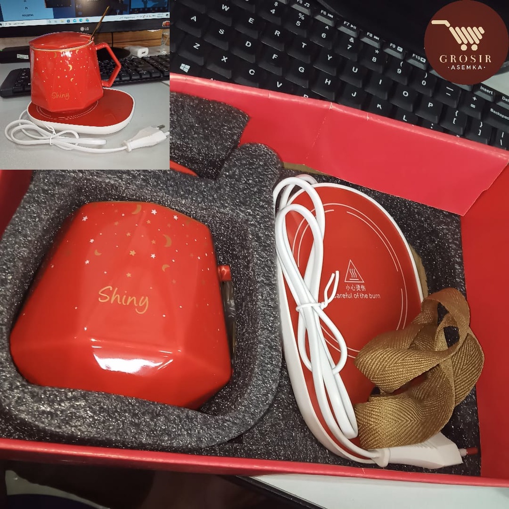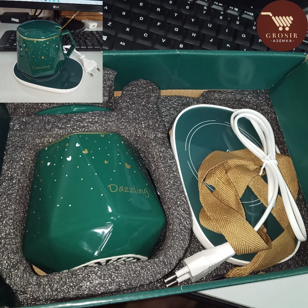 Gelas set keramik / Mug Cangkir Gelas Listrik Pamanas Penghangat Minuman Kopi Susu Cup Coffee Warmer