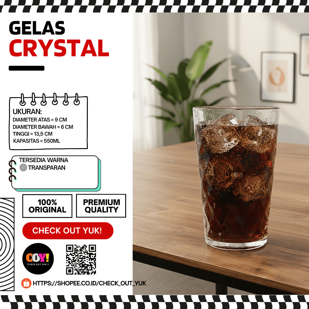 Gelas Mug Plastik Crystal Kristal Transparan Premium 550ml - Gelas Minuman Aesthetic Cafe