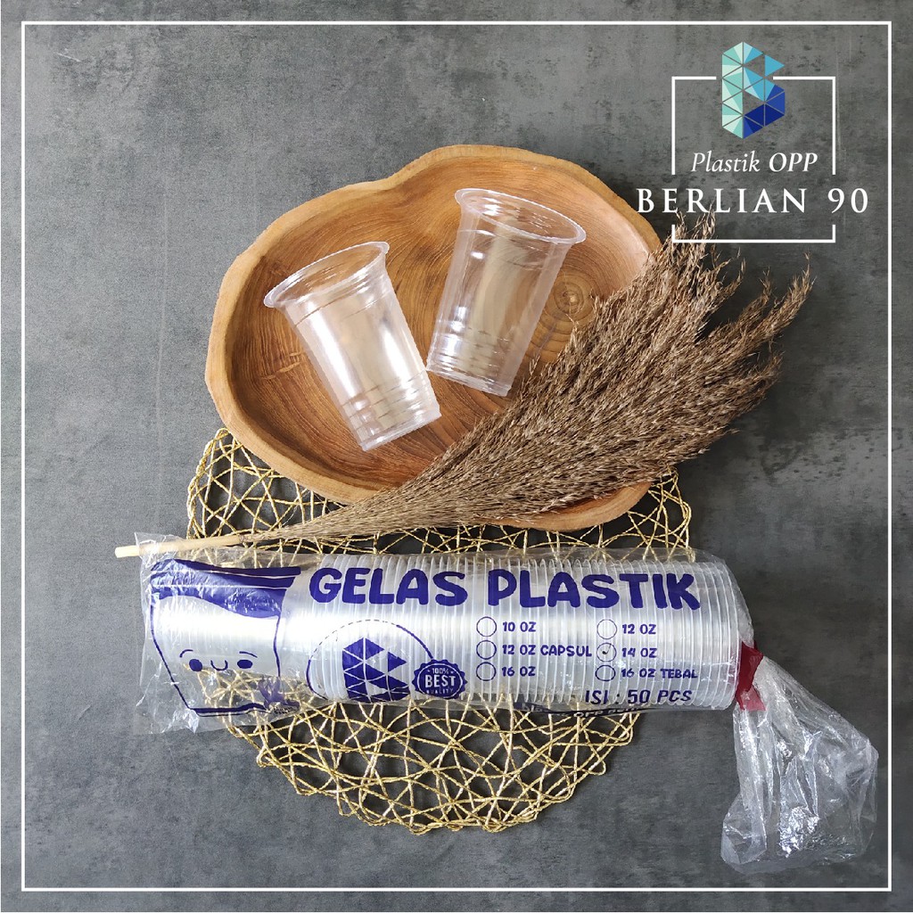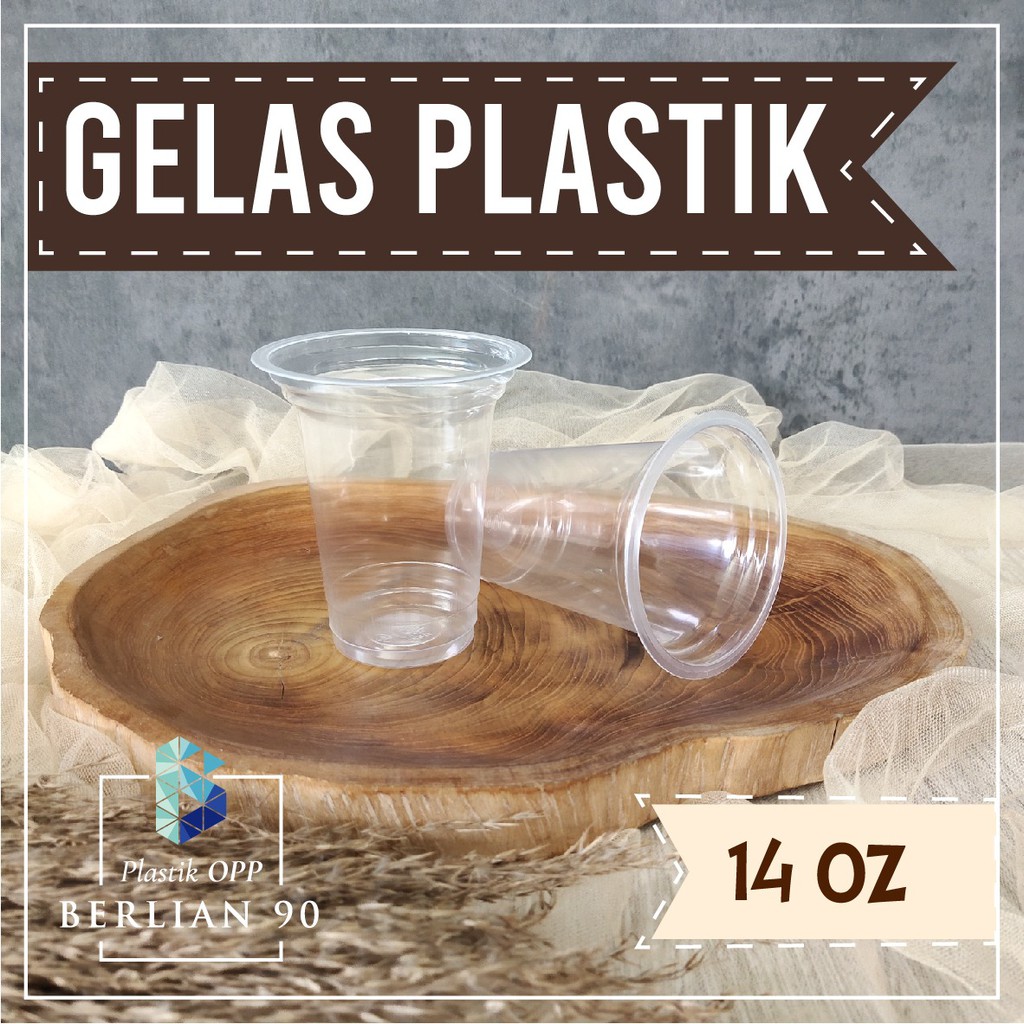 Gelas Plastik 14 Oz Datar - Cup Minuman 414 Ml isi 50 pcs