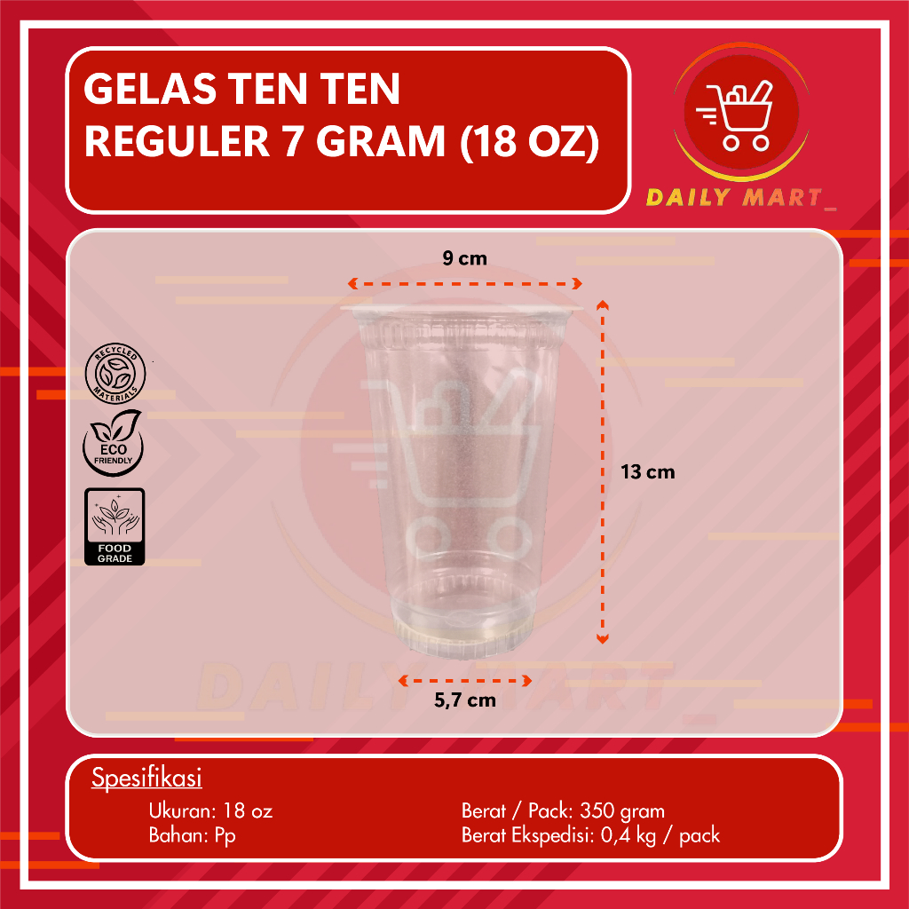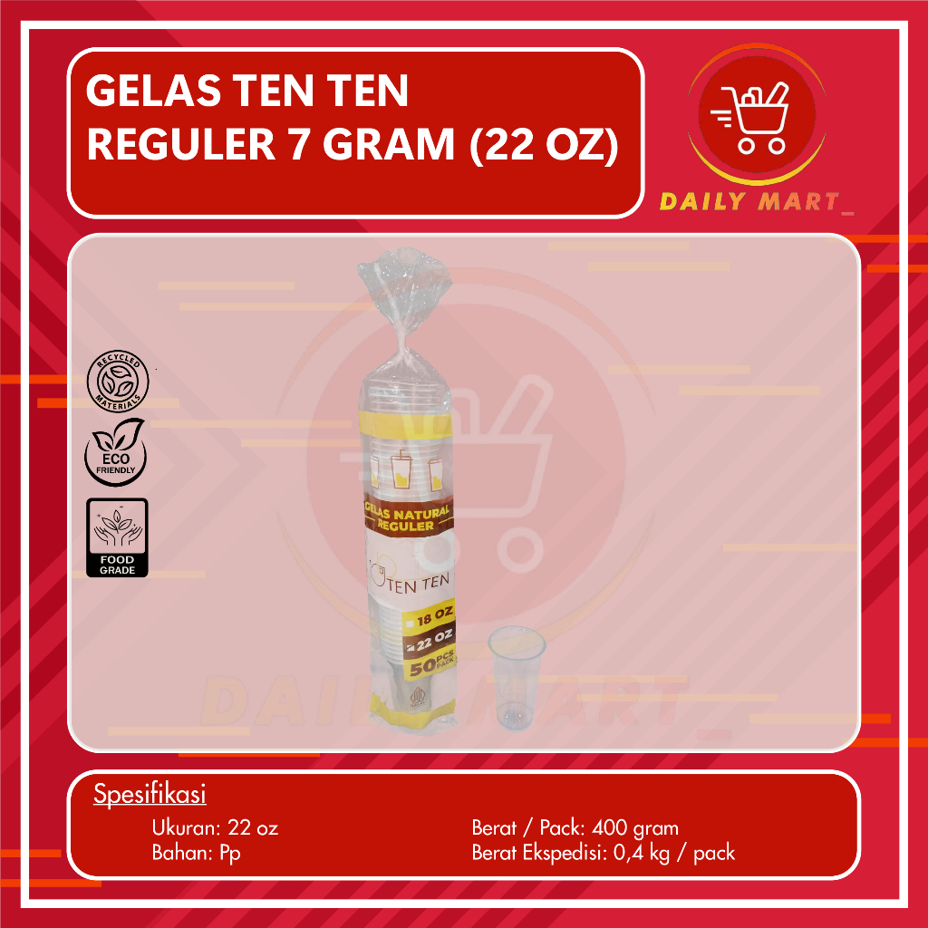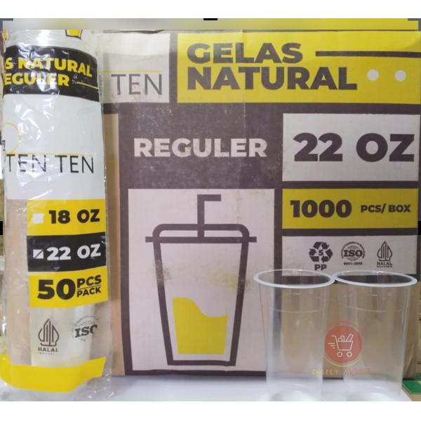 Gelas Plastik Bening Datar 18oz 22oz Berat 7GR Isi 50pcs - Gelas Reguler - Gelas Juice - Gelas Es Teh - Gelas Kekinian Ten Ten Reguler Datar 18 oz & 22 oz Isi 50 Pcs