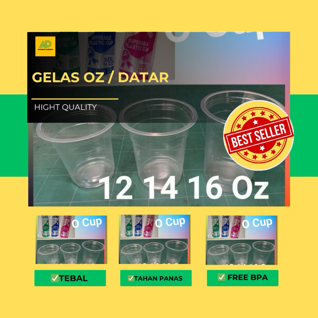 Gelas Plastik Datar 10 12 14 16 Oz Isi 50 Pcs - O Cup Natural / Gelas Oz Plastik Merek OCup isi 50 pcs / Gelas Mika / Gelas Plastik / Es Teh / Dawet / Gelas Plastik O Cup Natural 10-16oz - Gelas Dingin Bening Murah / Doger / Pentol