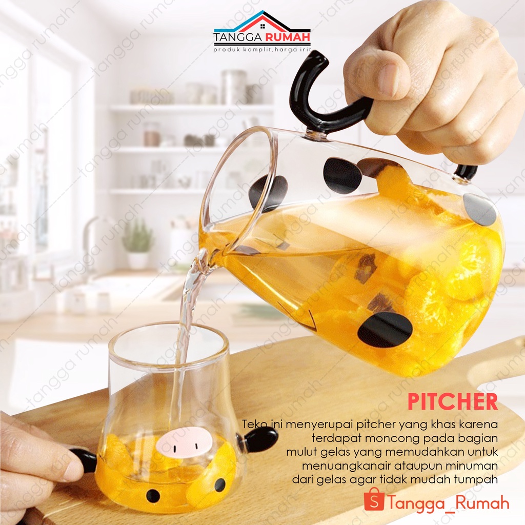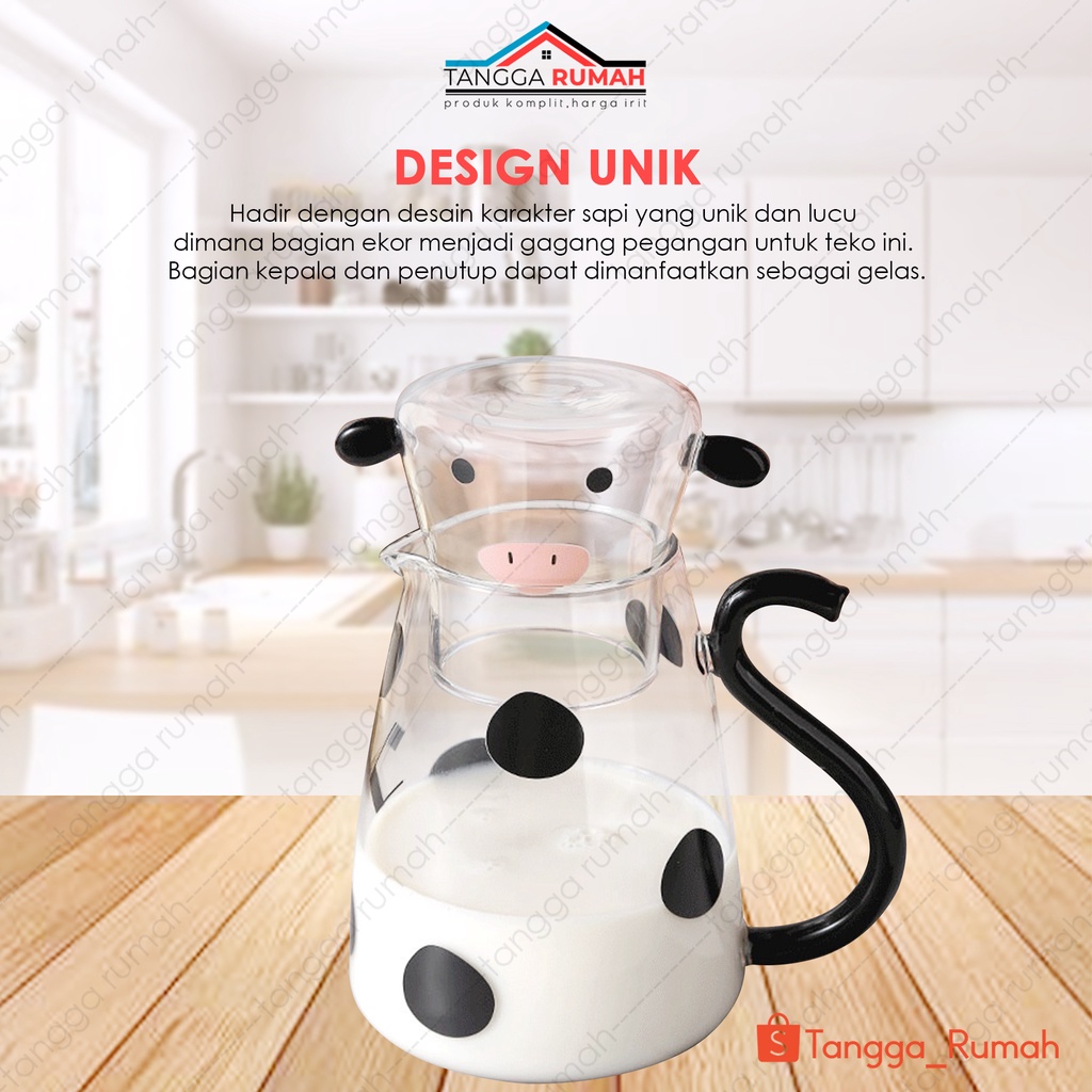 Gelas Teko Kaca Bening Motif Sapi Tempat Jus / Susu Panas / Dingin Aesthetic / Estetik Milk Jug
