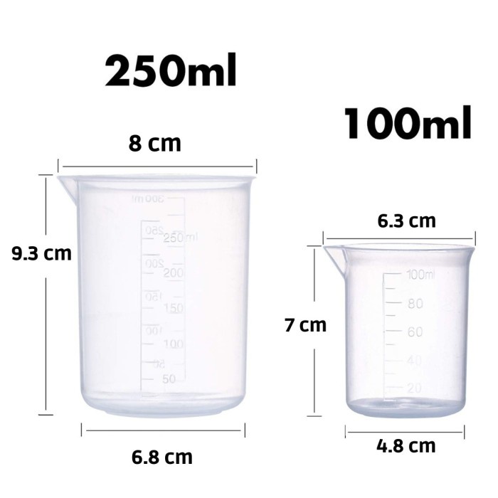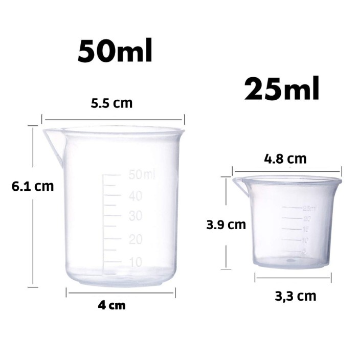 Gelas Ukur Lab Takar Beaker Plastik Measuring Cup Garis Takaran Lab 25ml 50ml 100ml 250ml 500ml 1000ml