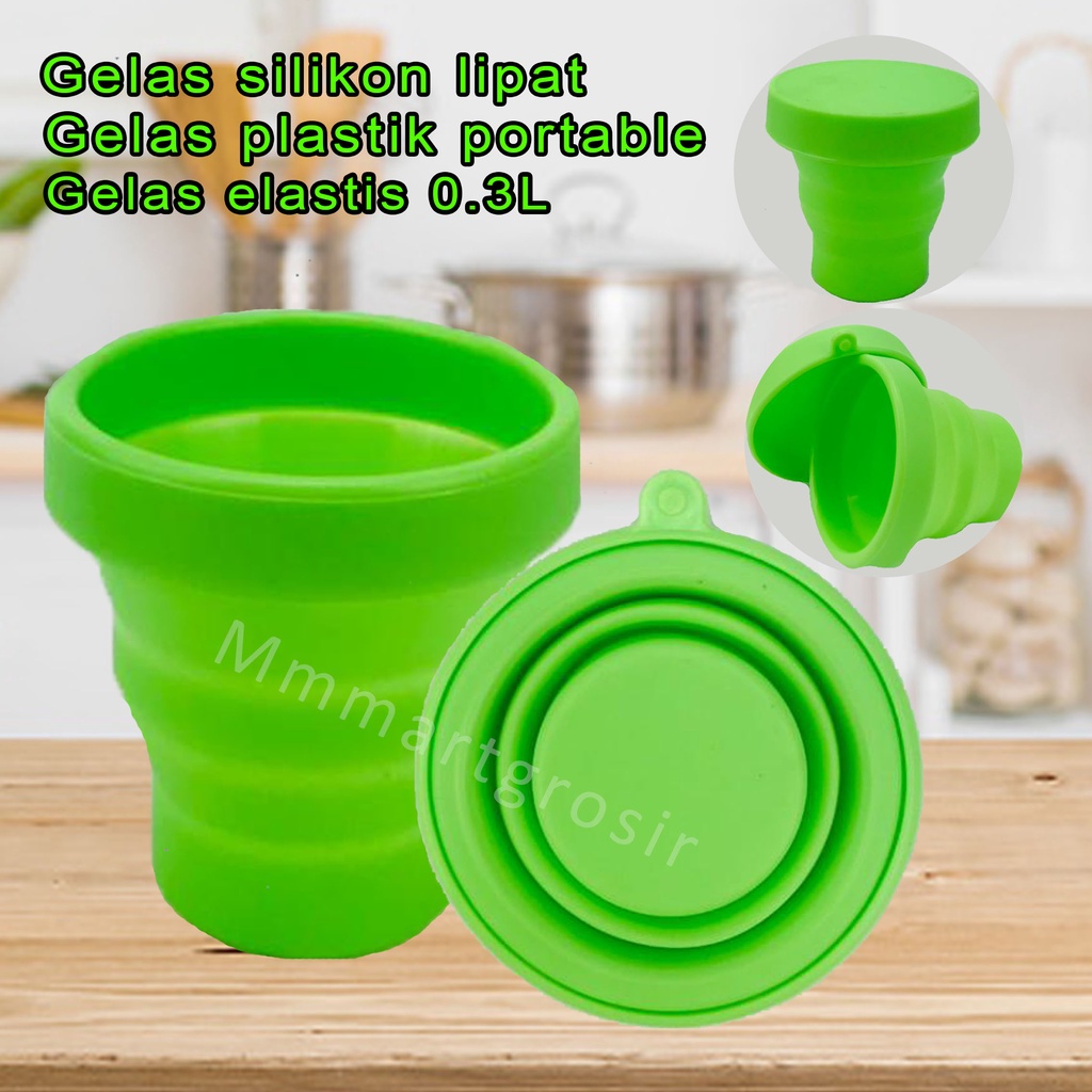 Gelas silikon lipat/gelas lipat portable polos/ Gelas elastis / Hijau / 0.3L