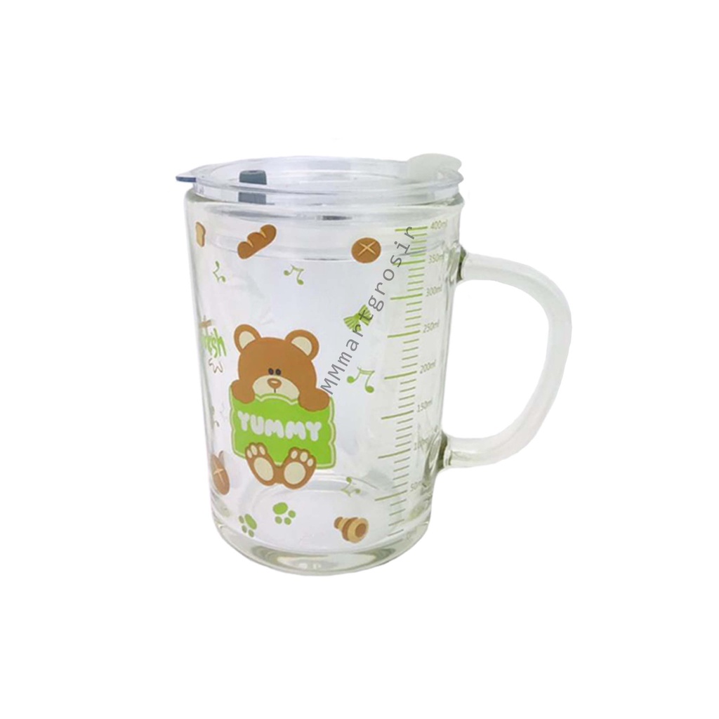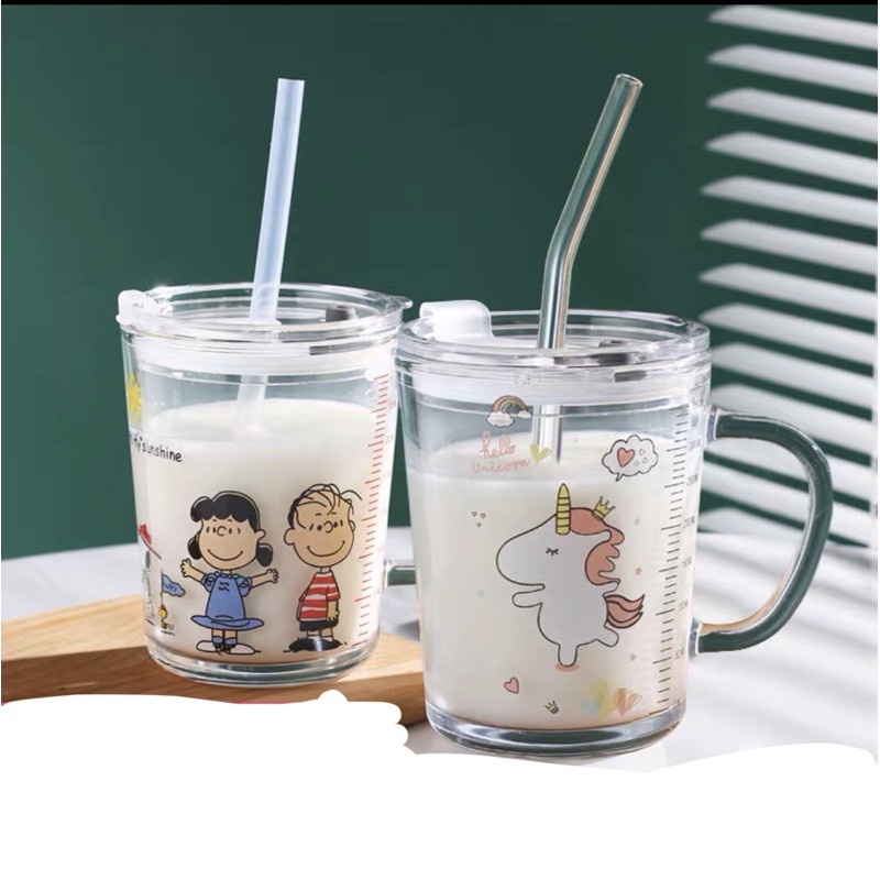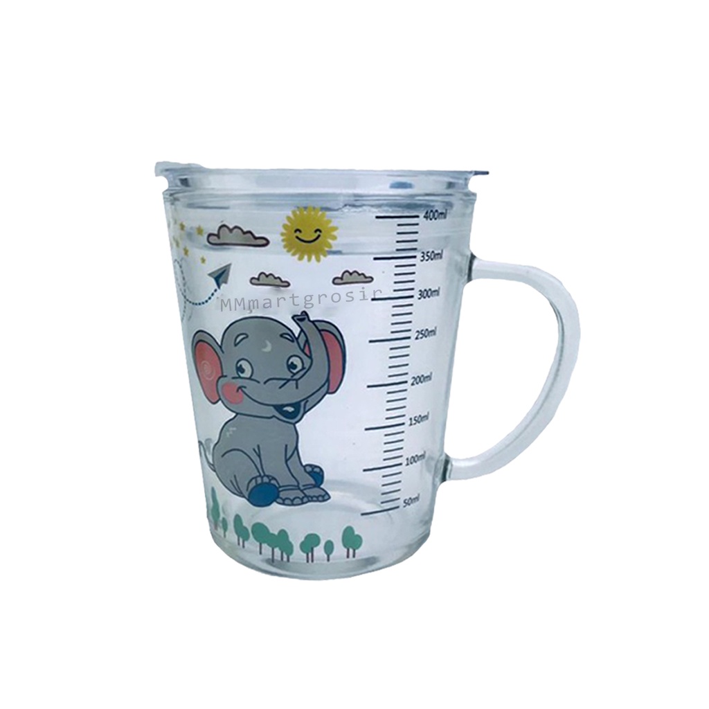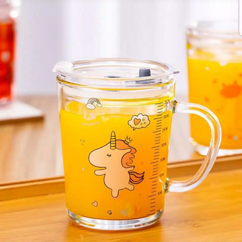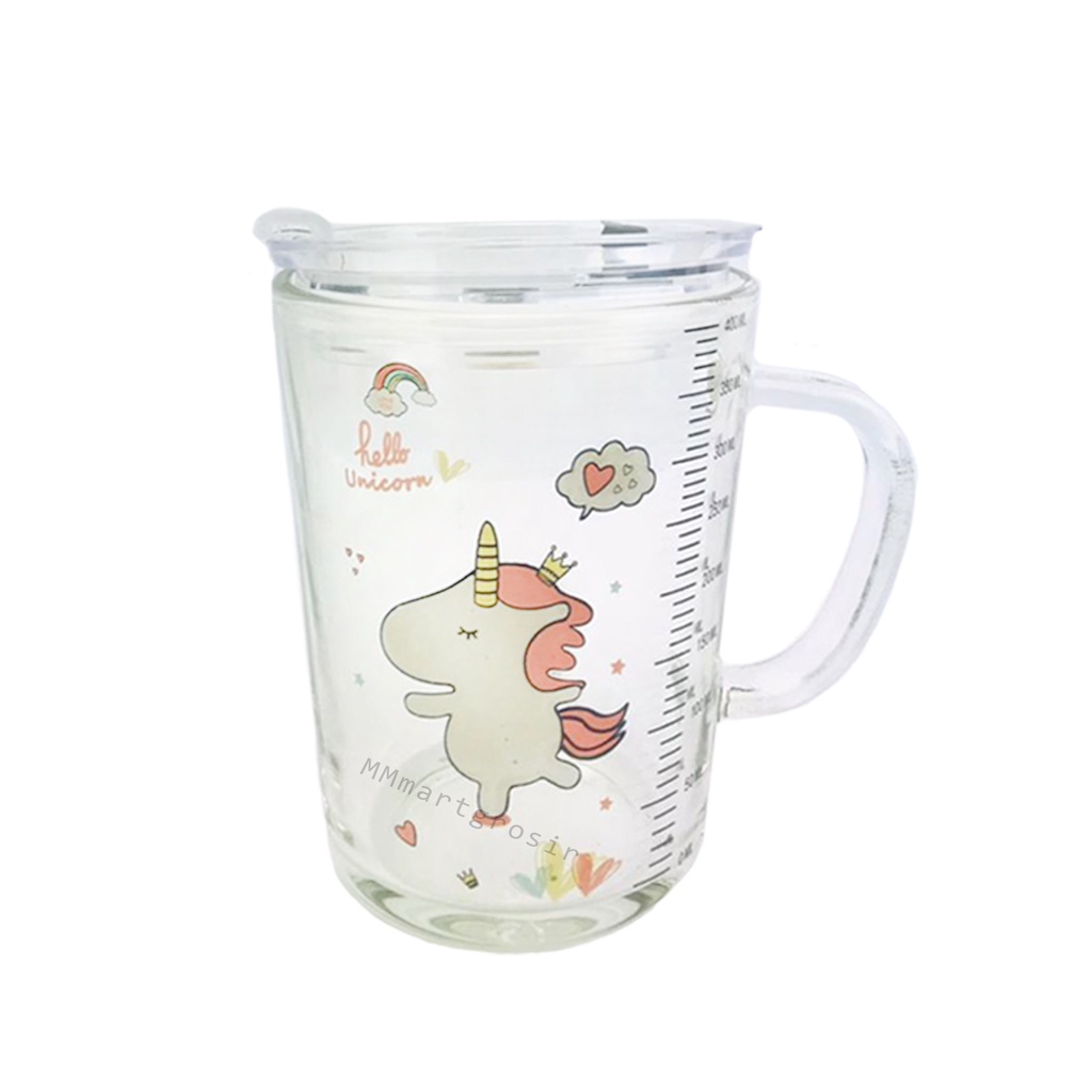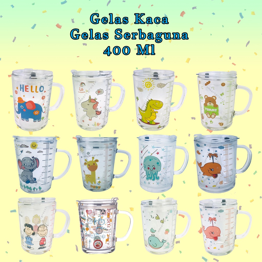 Gelas Susu / Gelas Kaca Tebal / Gelas Ukur / Gelas Tumbler Motif Lucu Multifungsi / 400ml