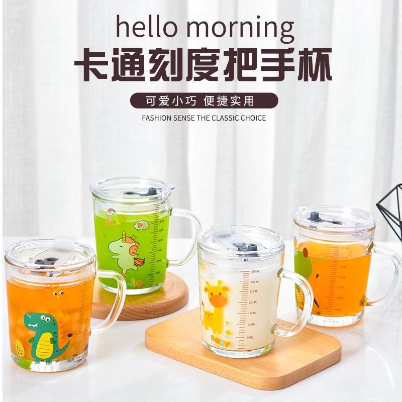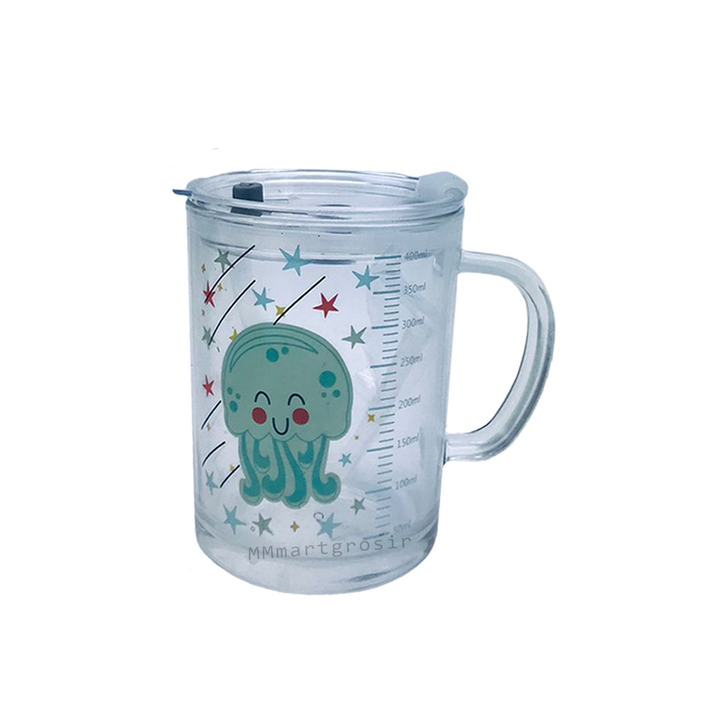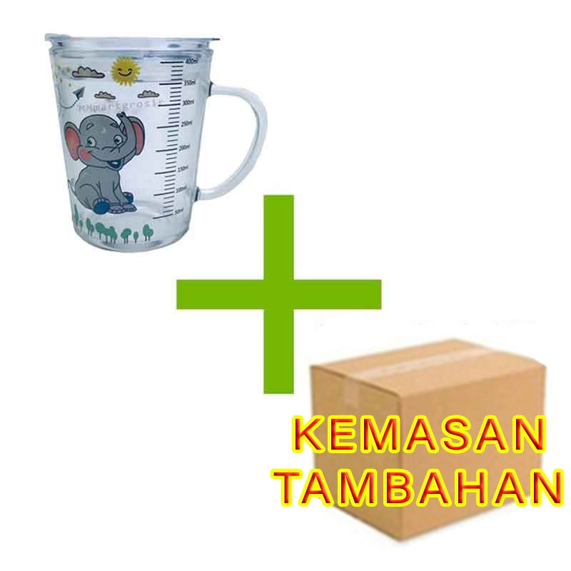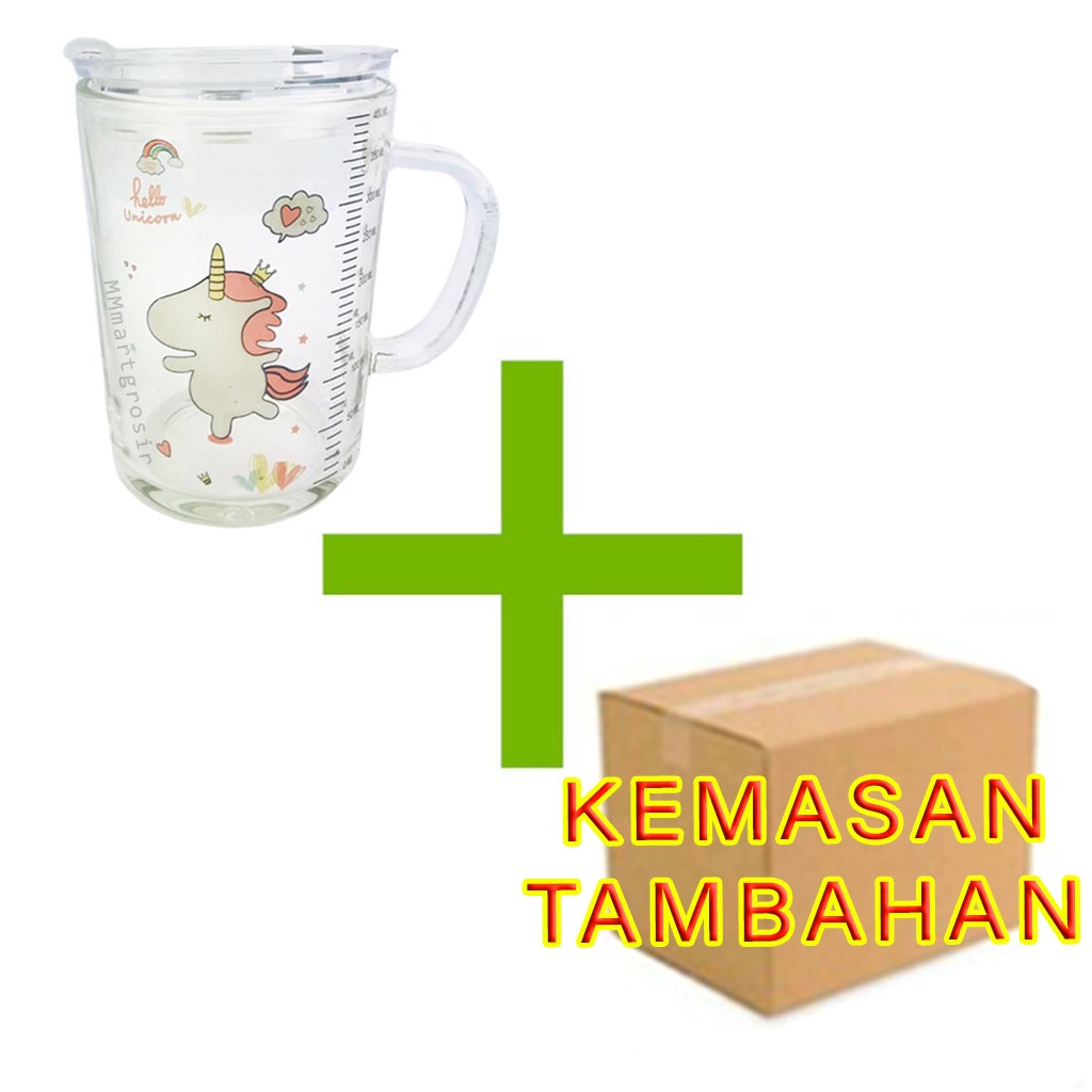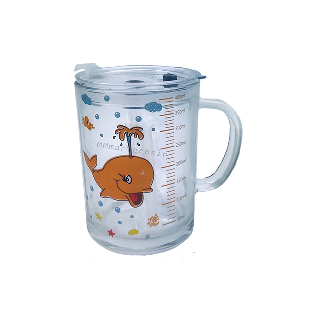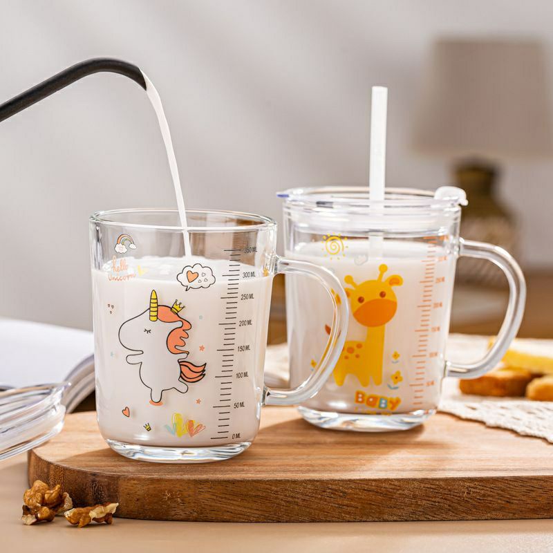 Gelas Susu / Gelas Kaca Tebal / Gelas Ukur / Gelas Tumbler Motif Lucu Multifungsi / 400ml