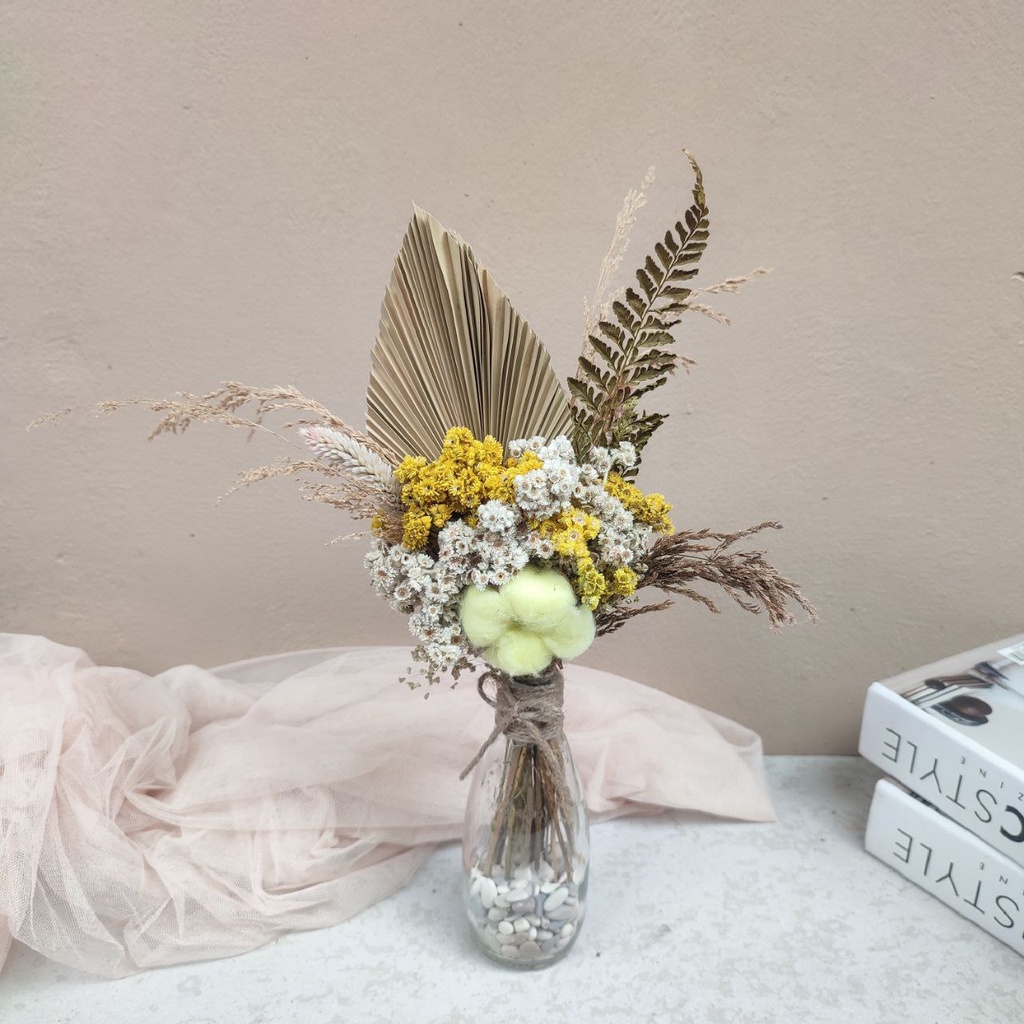Gema set | vas bunga | bunga kering | dried flower | vas kaca | vas kayu | vas plastik | bunga edelweis | hiasan meja