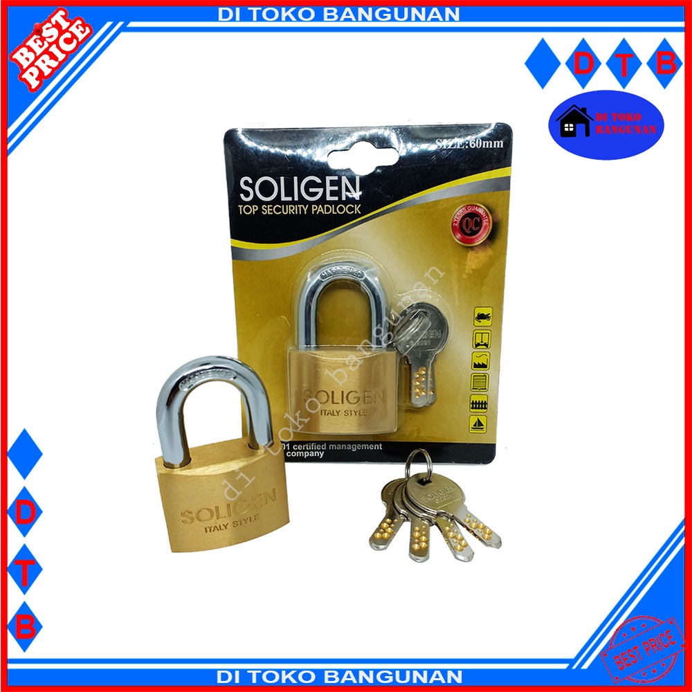 Gembok Kuningan Komputer Key Leher Pendek Soligen Varian 40MM 50MM 60MM Gembok Pintu Gembok Pagar Padlock