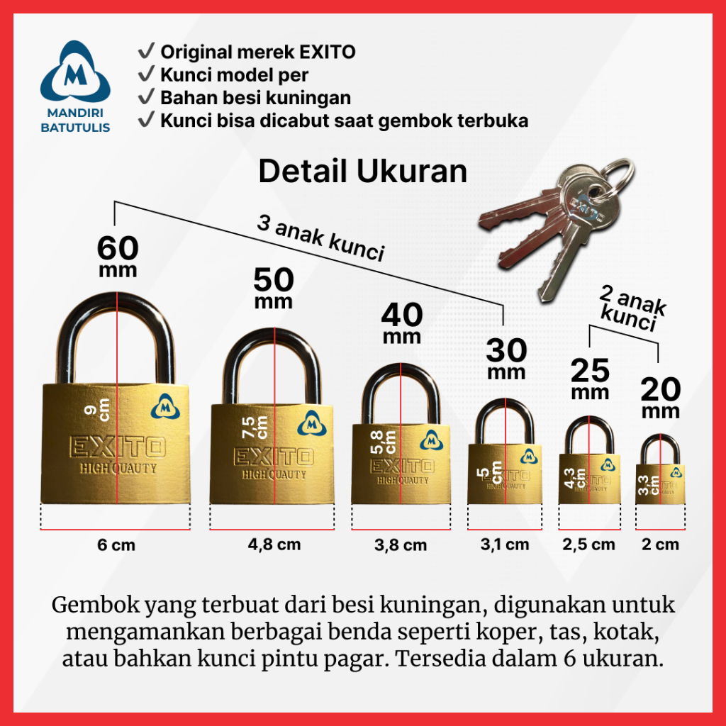 Gembok Kuningan mm / Padlock / Gembok Pagar / Gembok Motor / Gembok Rumah