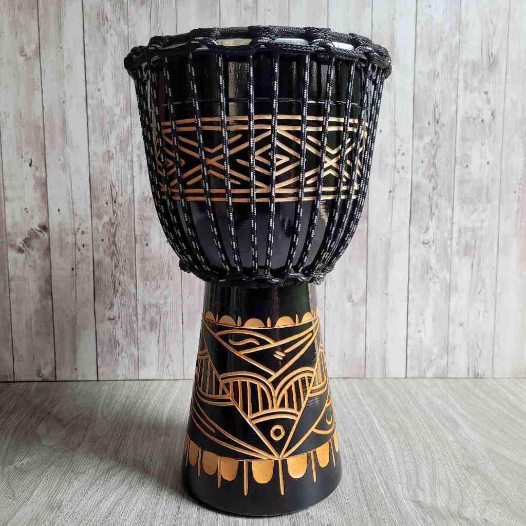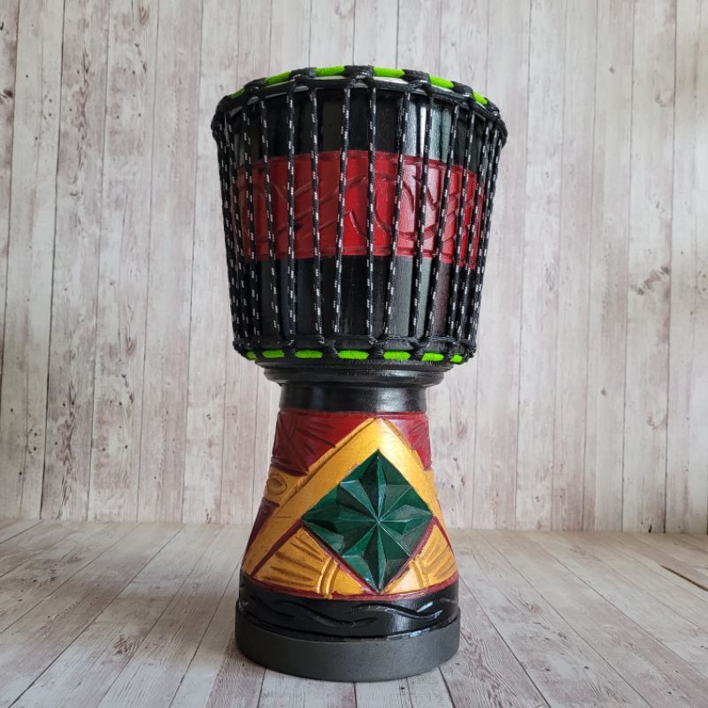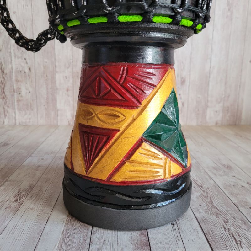 Gendang Jimbe 40cm Ukir Afrika Kendang Djimbe Reggae Kulit Asli Motif Unik Suara Super Berkualitas