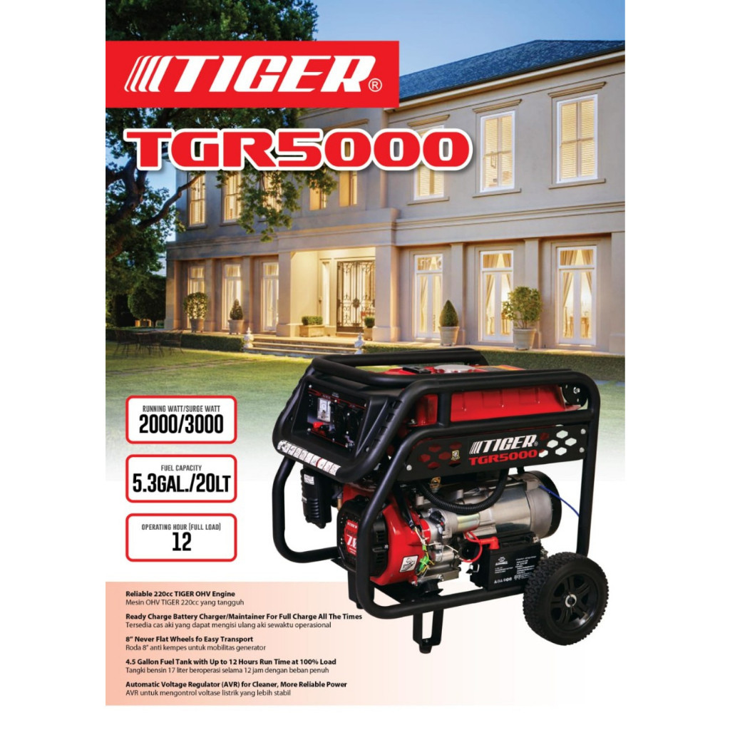 Genset TIGER TGR5000 TG4880 3000 Watt / Power Generator Genset 3000Watt Double Stater TGR 5000 TG 4880 TIGER