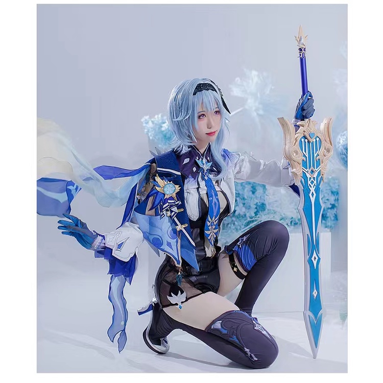 Genshin Impact Cosplay Eula Genshin Eula Stoking Cosplay Costume Shoes Wig Halloween Party Outfit Game Suit Bodysuit Jumpsuit