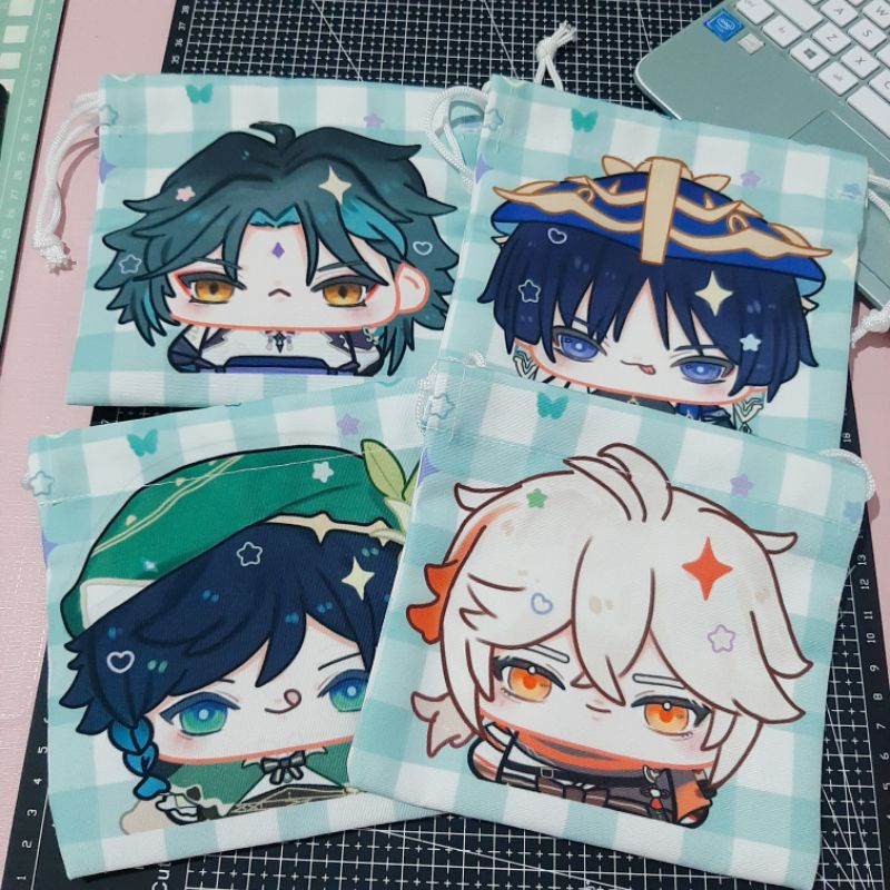 Genshin Impact Pouch Serut Drawstring Pouch Serut Xiao Scaramouche Kazuha Venti Aether Anemo Boys Anime Fanart Fanmerch Bag
