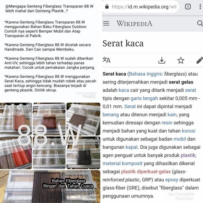 Genteng Transparan Fiber 88.W Model Genteng Beton Gelombang