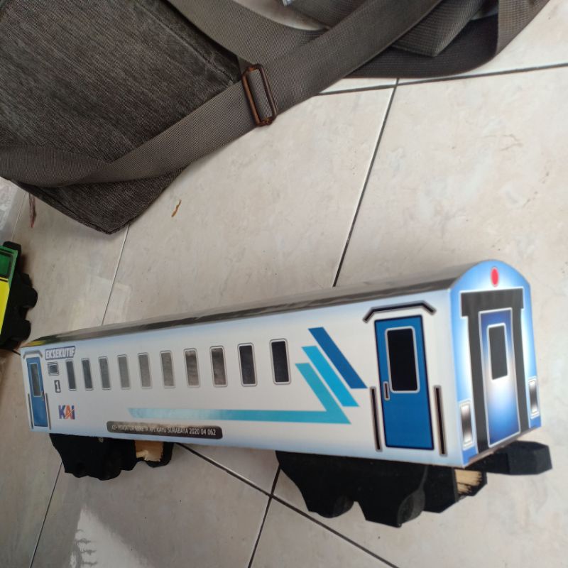Gerbong Eksekutif Livery 2005 3 Warna PJKA - Miniatur Kereta Api Kayu Indonesia