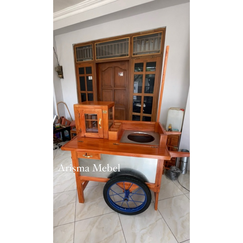 Gerobak Cilok Dorong, Gerobak Cilok Roda 2, Gerobak cilok keliling, gerobak cilok, gerobak cilok dorong kayu murah