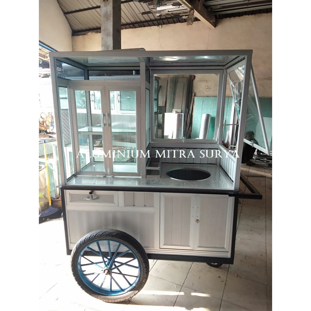 Gerobak Keliling Roda Gerobak Aluminium Kaca Tahan Lama Jualan Dagang Mi Ayam Bakso Booth Display TANGERANG JAKARTA