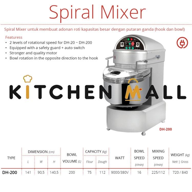 Getra DH-200 Mixer Membuat Adonan Roti Spiral Mixer
