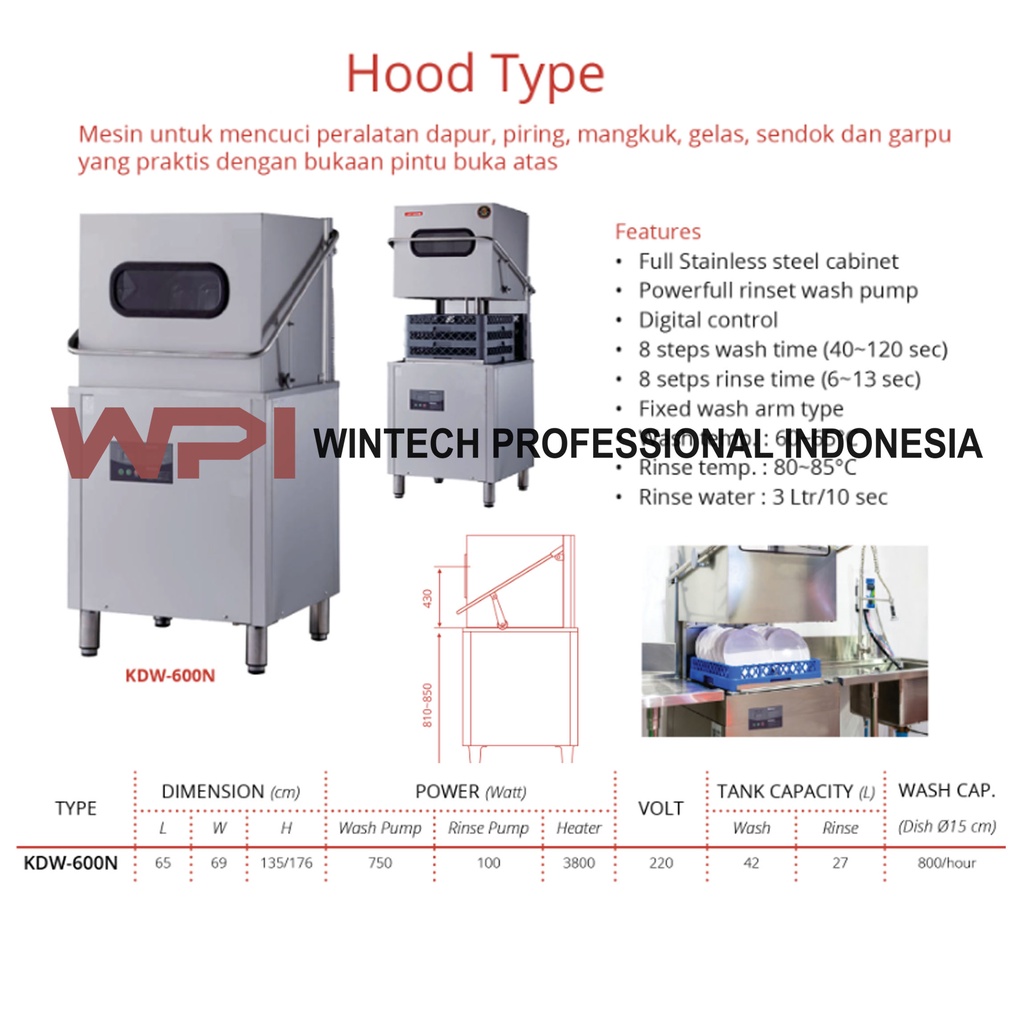 Getra KDW-600N Standing Commercial Dishwasher Original - Mesin Pencuci Peralatan Dapur, Piring, Mangkuk, Gelas, Sendok & Garpu