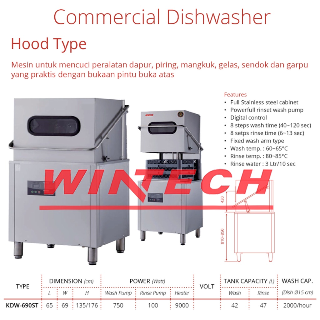 Getra KDW-690ST Standing Commercial Dishwasher Original - Mesin Pencuci Peralatan Dapur, Piring, Mangkuk, Gelas, Sendok & Garpu
