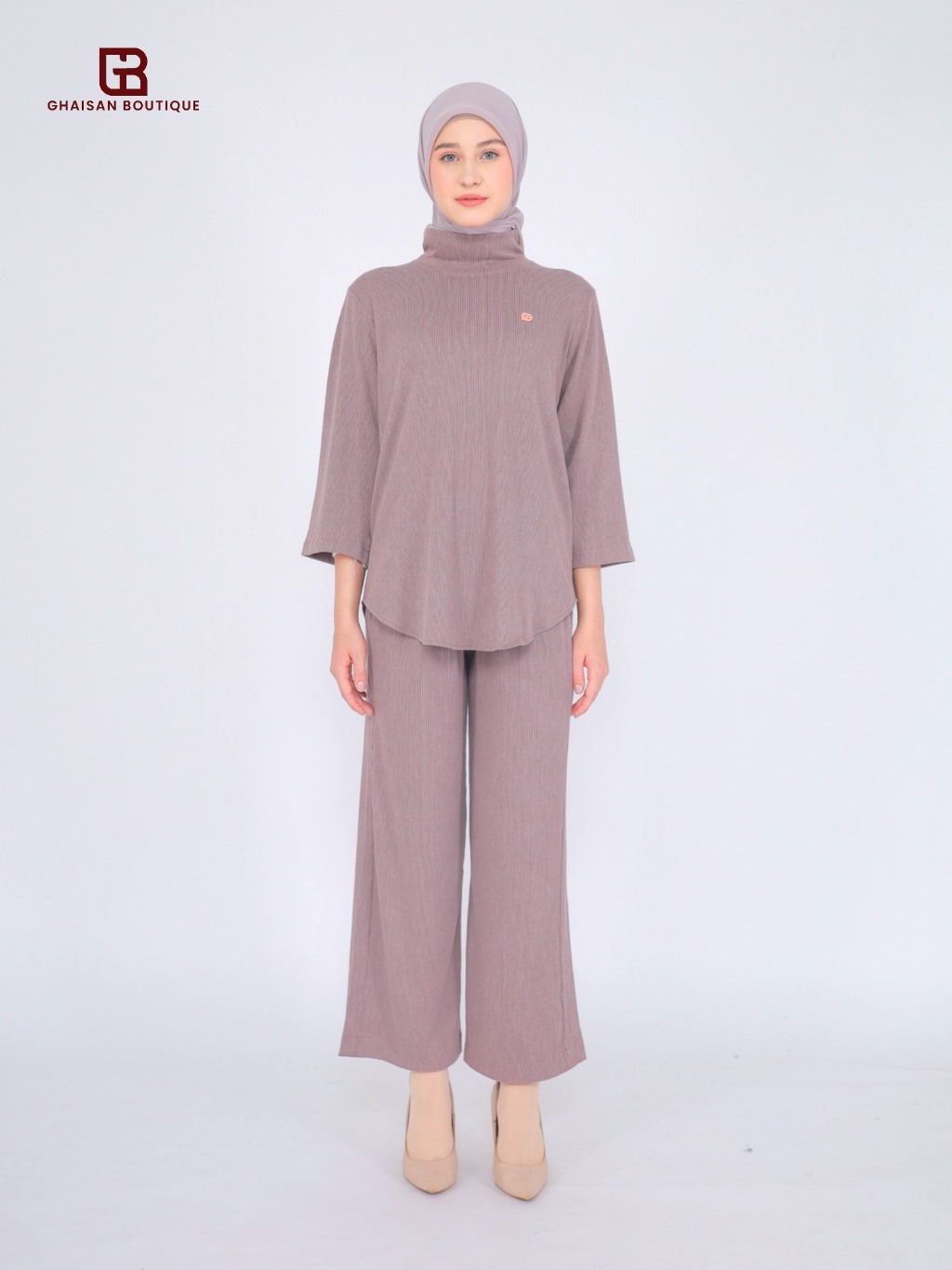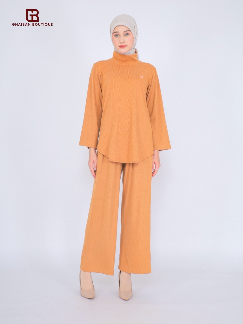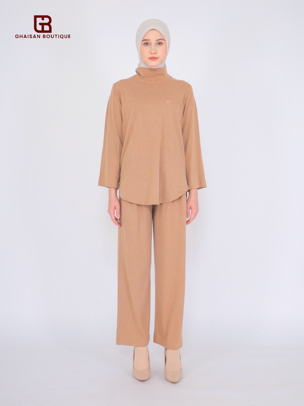 Ghaisanboutique | Larisa One Set Turtle Neck | One Set Knit Premium Kerah Atasan Wanita dan Celana Kulot Wanita Baju