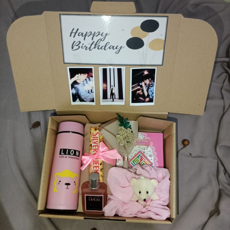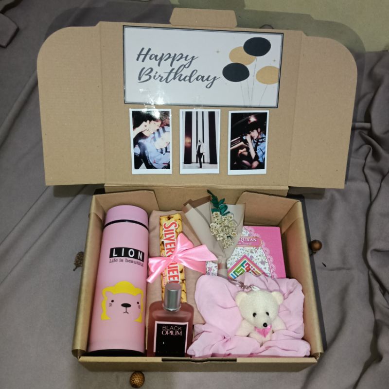 Gift Box Hampers Paket Spesial | Gift Box Birthday | Kado Ulang Tahun | Kado Romantis | Hampers Wisuda | Hadiah Anniversary | Hampers Hijab Al Quran Coklat Botol Minum Bunga Parfum Boneka