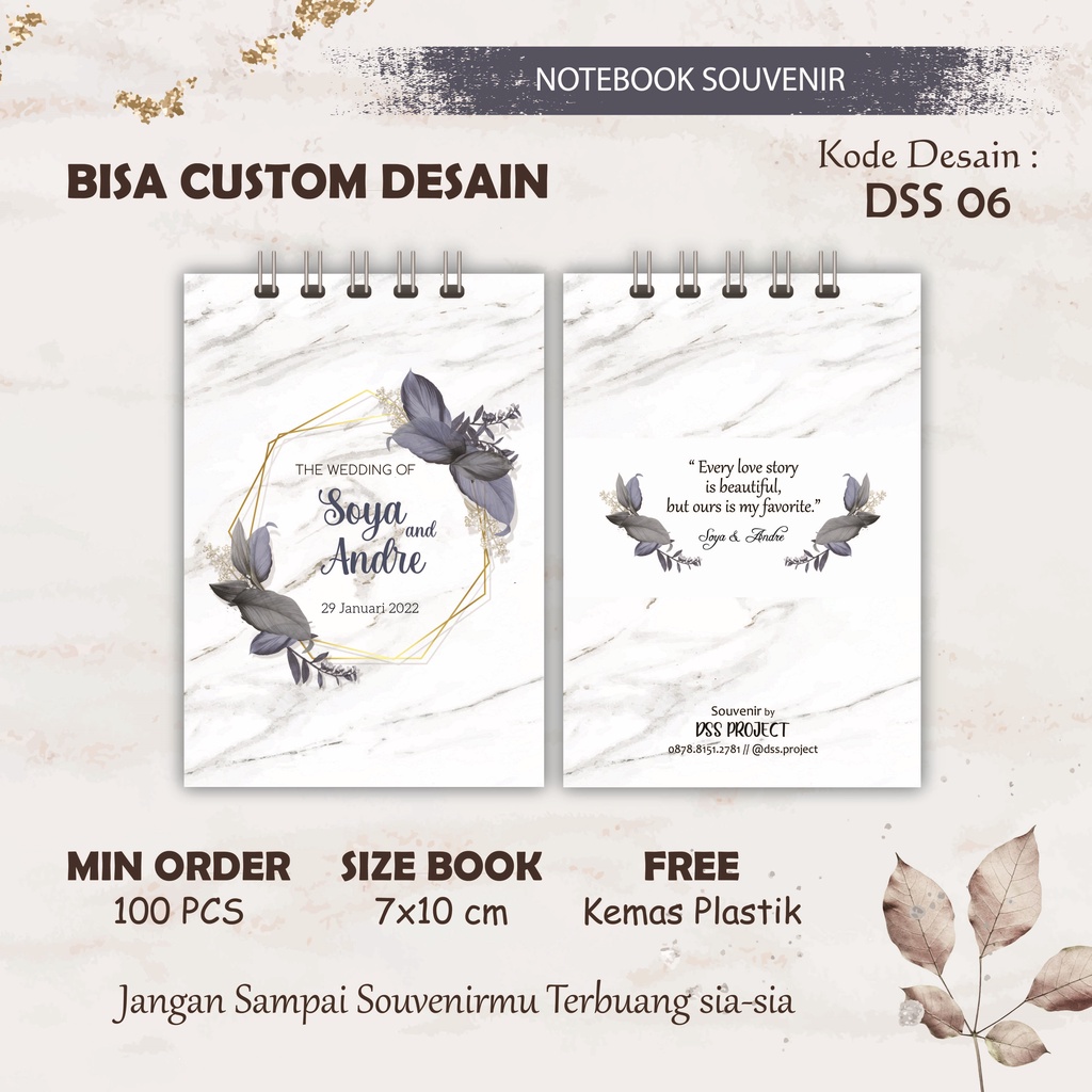 Gift Hadiah Souvenir Notebook Buku Tulis Kecil Custom Desain Gambar Dan Nama Termurah (DSS 01) By DSS Project