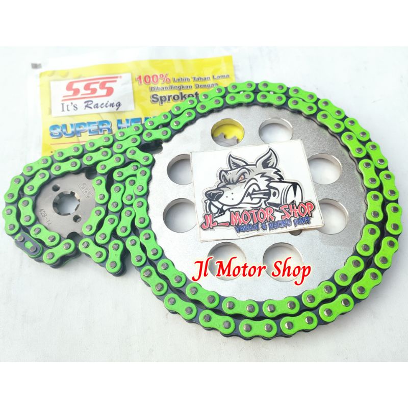Gir Gear Set GearSet SSS 428 Supra x 125 Karisma Blade New Revo Rantai Warna Biru Merah Hijau Dll