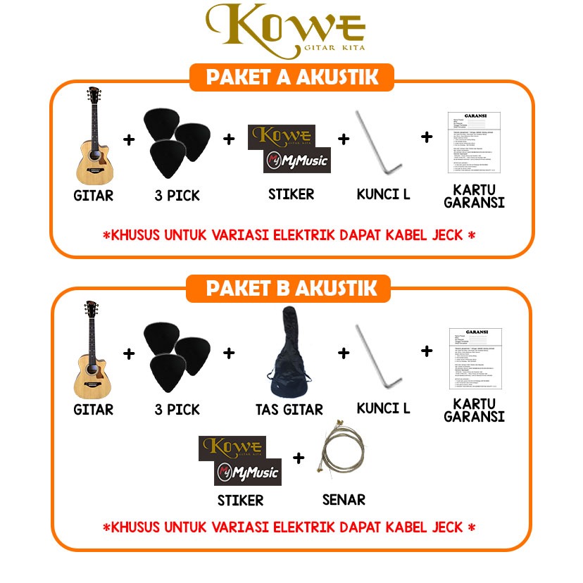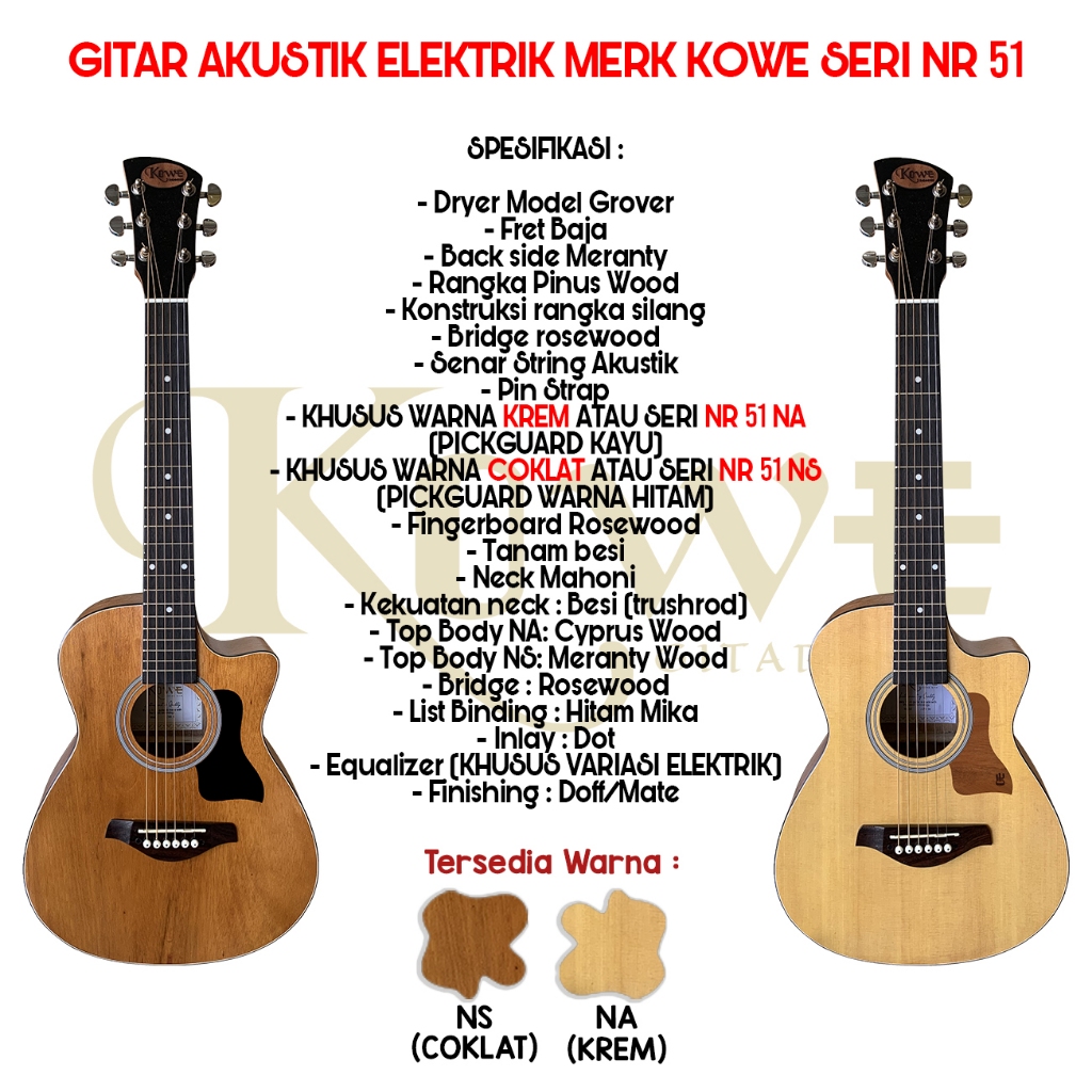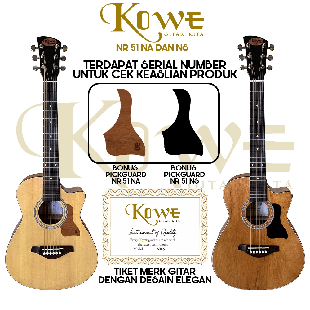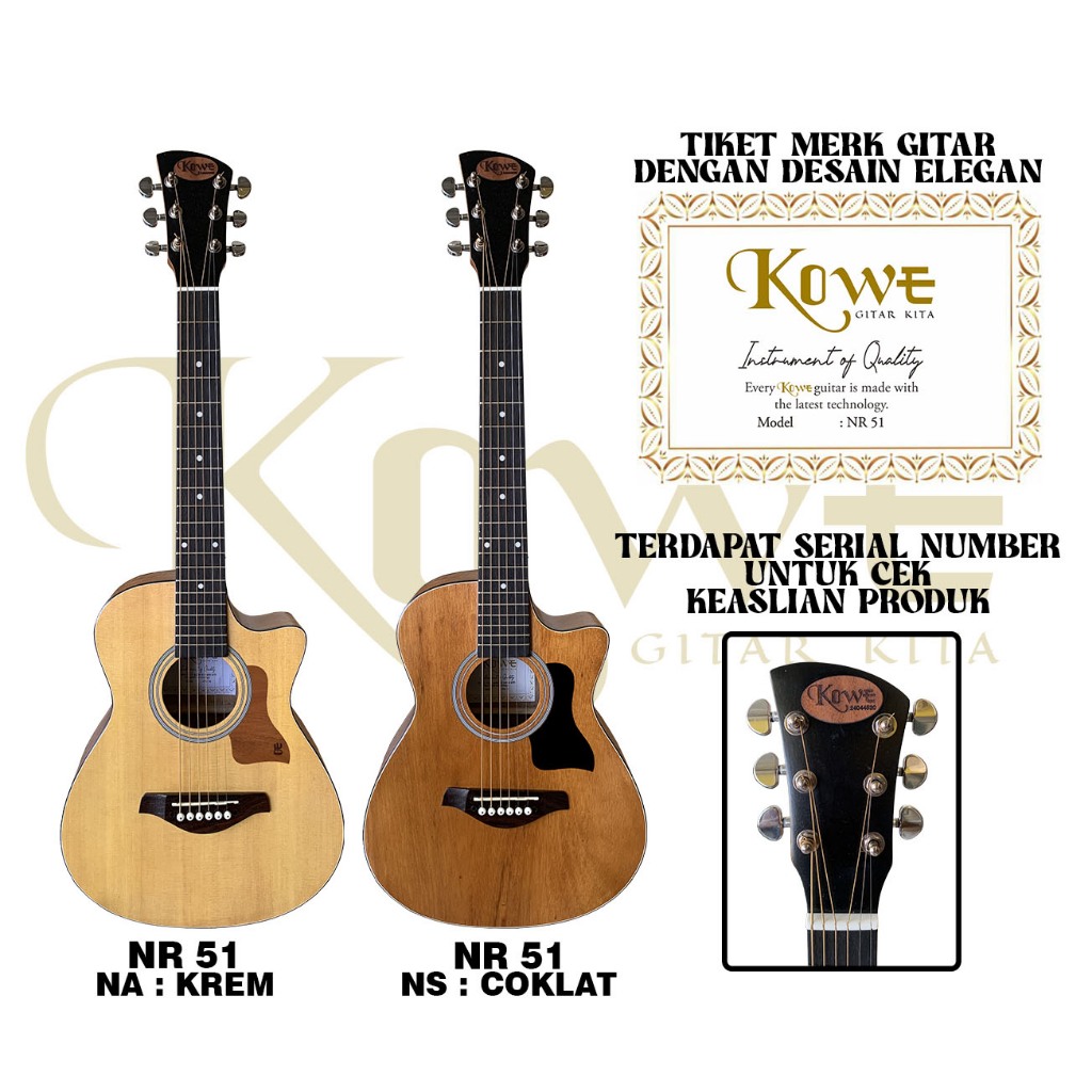 Gitar Akustik KOWE GITAR Ukuran 3/4 Seri NR 51 NS Original Packing Kayu