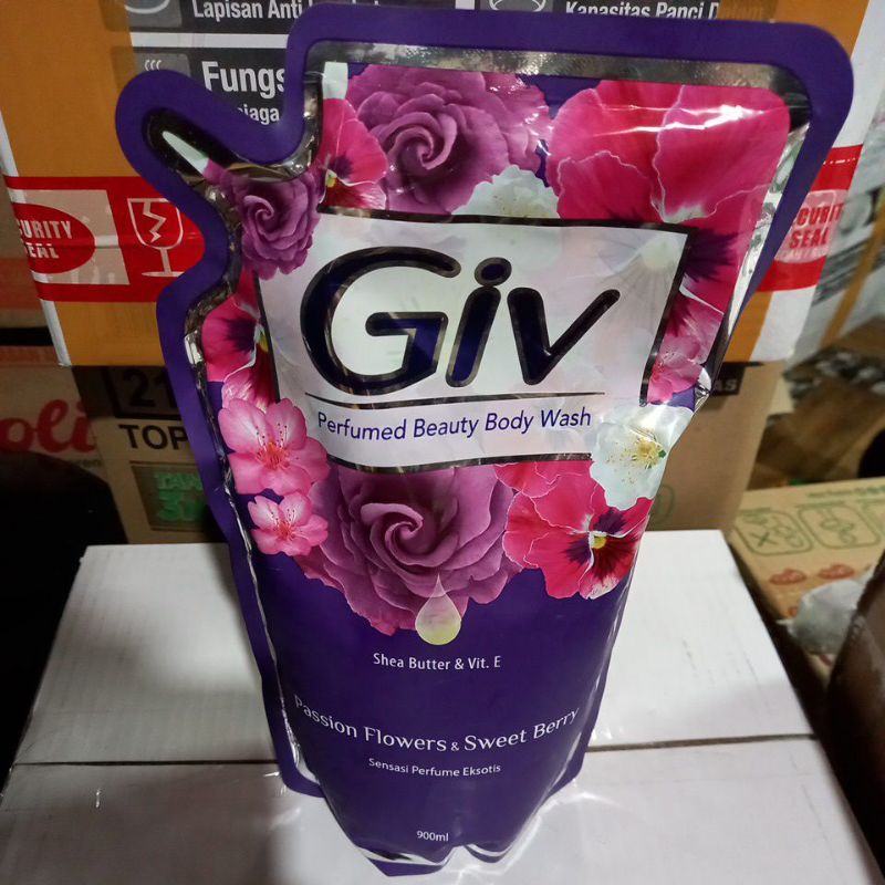 Giv Body Wash Sabun Mandi Cair Refill 900ml Flower Glowing White GIV-Ungu