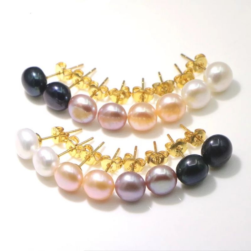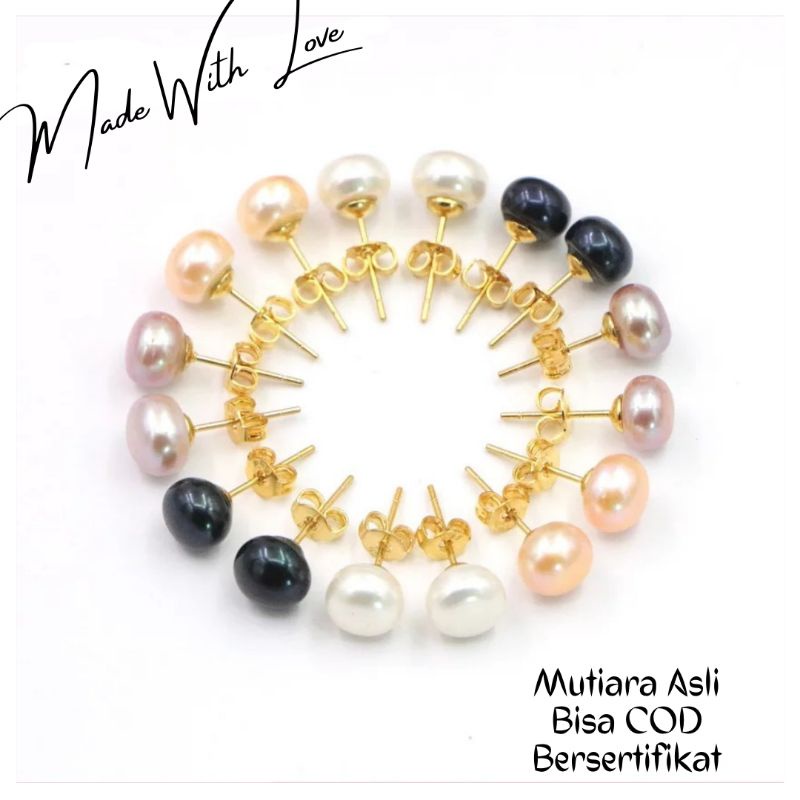 Giwang Korea Anting Fashion Wanita Stud Tusuk Mutiara Air Tawar Asli Lombok Bersertifikat