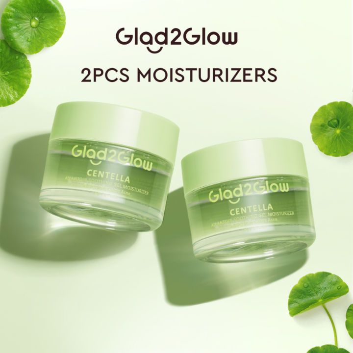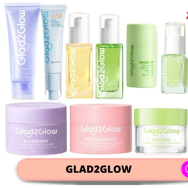 Glad2Glow 2PCS Skincare Paket Light Sunscreen Gel UV SPF50 PA+++ 30g + Blueberry Moisturizer Cream 5x Ceramide Skin Barrier Repair